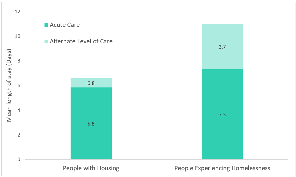 Median length of stay in acute inpatient care and alternate level of care (ALC) among people with housing and people experiencing homelessness