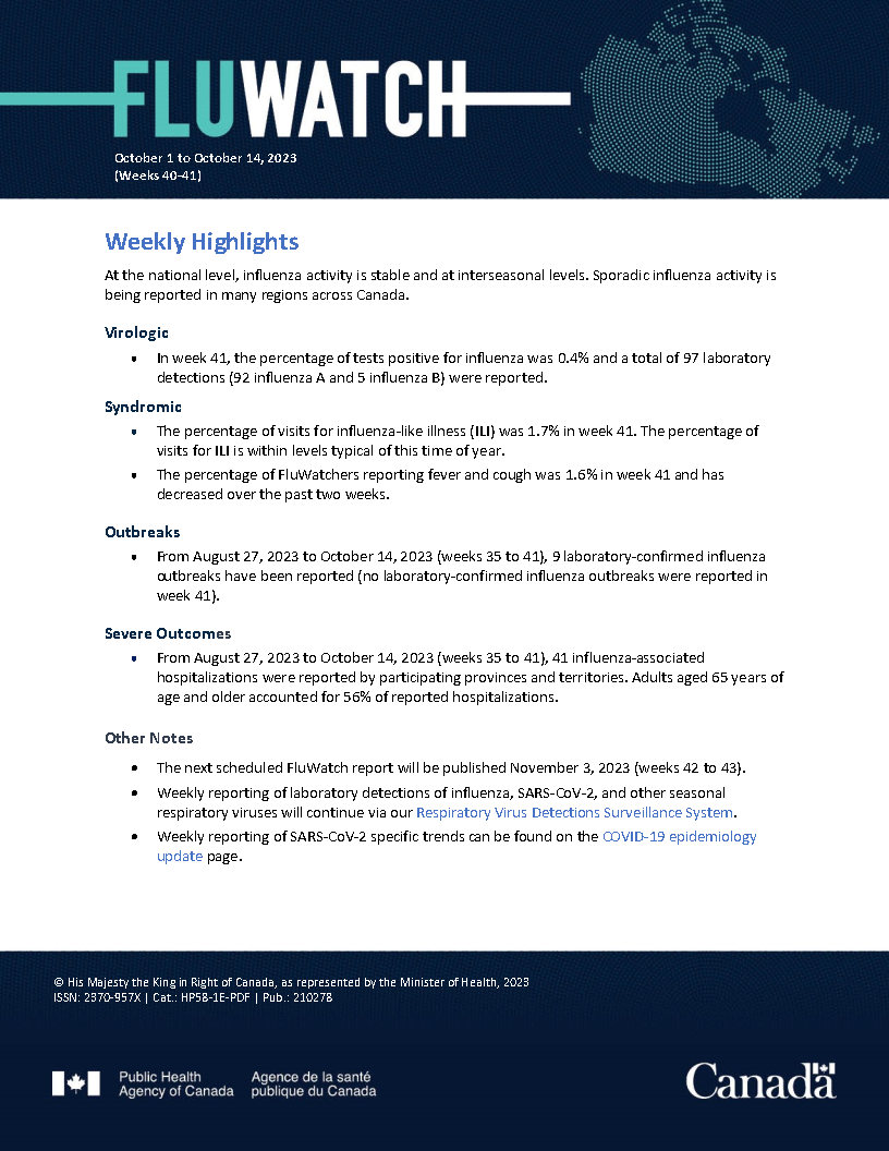 FluWatch report: October 1 to October 14, 2023 (weeks 40-41)