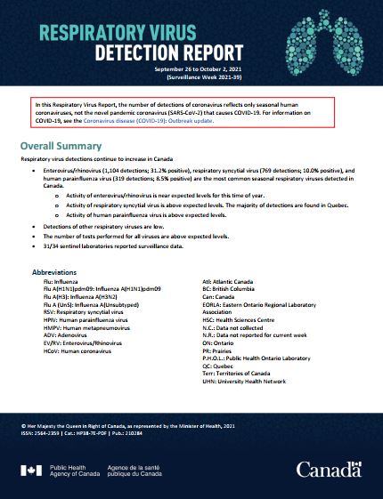 Respiratory Virus Report, week 39 - ending October 2, 2021
