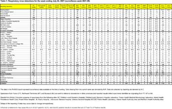 Table 1: Respiratory virus detections for the week ending August 21, 2021 (surveillance week 2021-33)