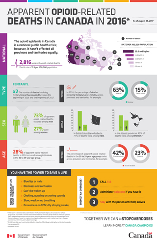 Infographic: Apparent opioid-related deaths in Canada in 2016 (August 2017)