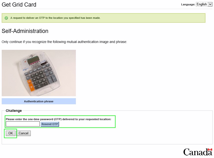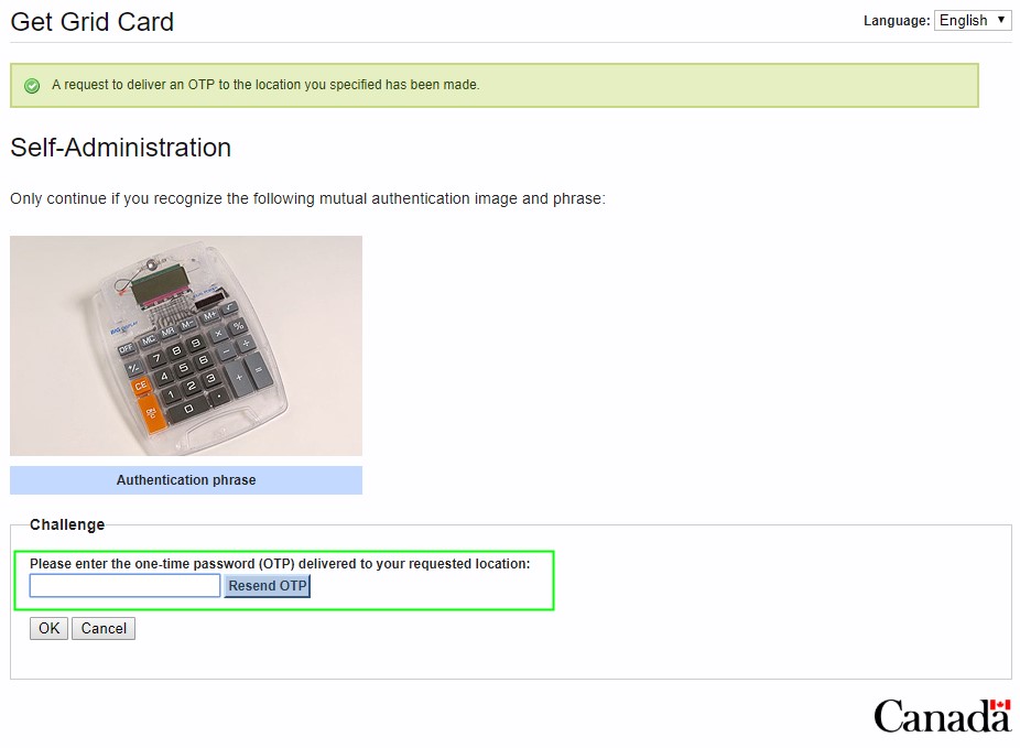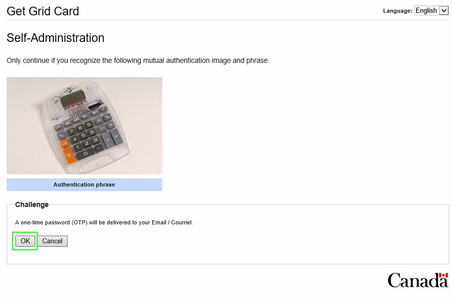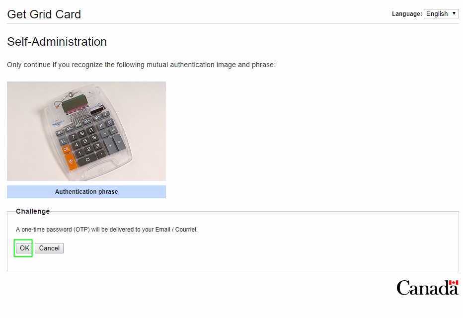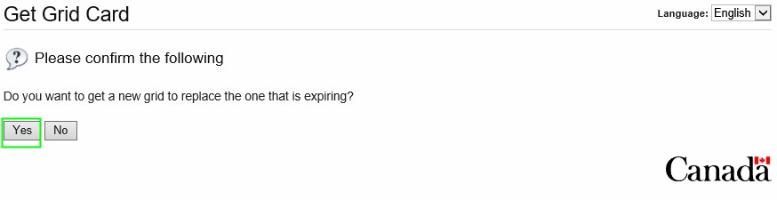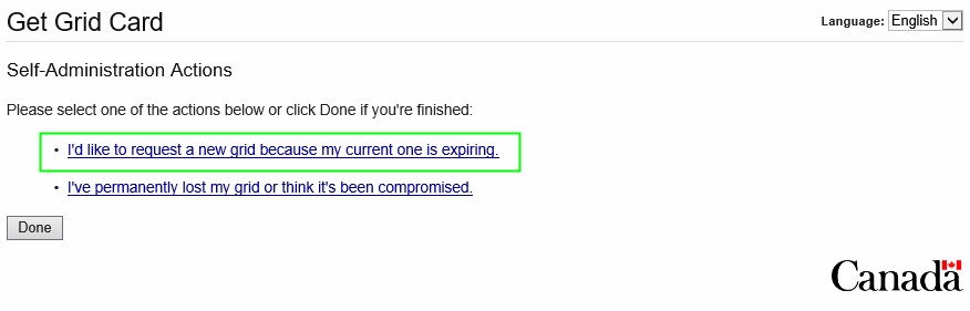 - After you log-in with your GC Key or Sign-In Partner and your access code, the following page will be displayed. Click on the Get Grid Card link in the blue box.
