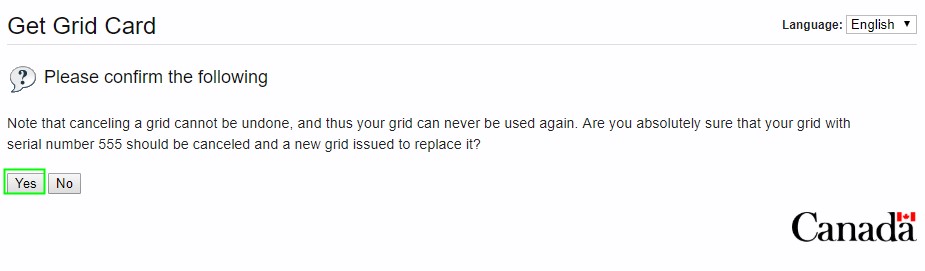 Cancelling a grid card cannot be undone, and thus your grid card can never be used again. Are you sure that your grid should be cancelled and a new grid issued to replace it?