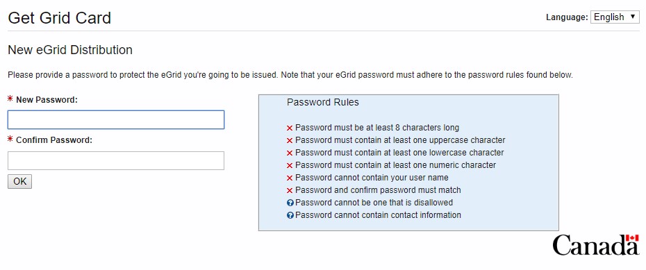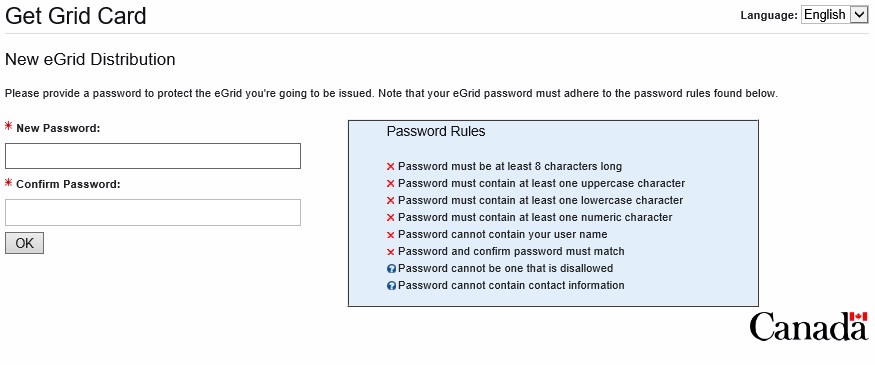 - Provide a password that will be associated with the Grid Card. Make sure to follow the Password Rules presented on the right side of the screen. Click OK.