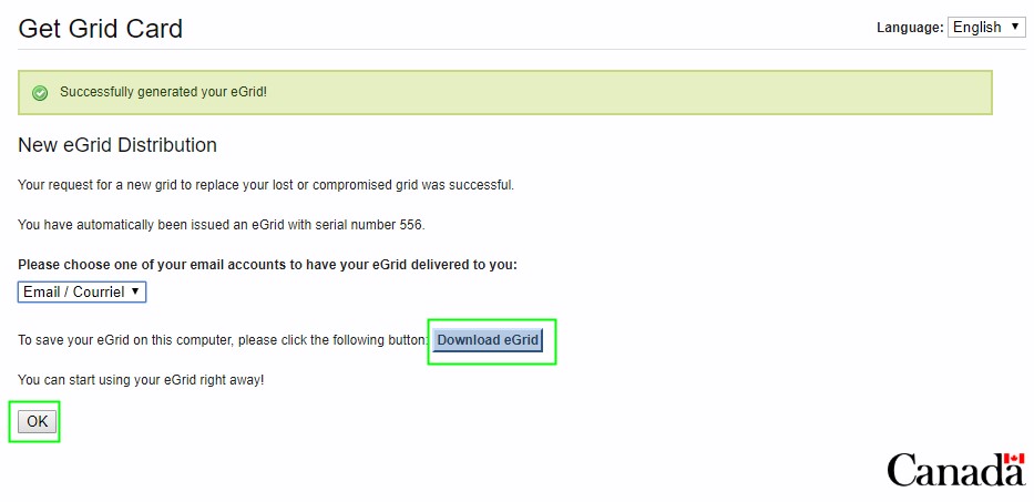 - You can open the new grid card by clicking on Download eGrid or you can choose to receive your Grid Card by email. Click OK.