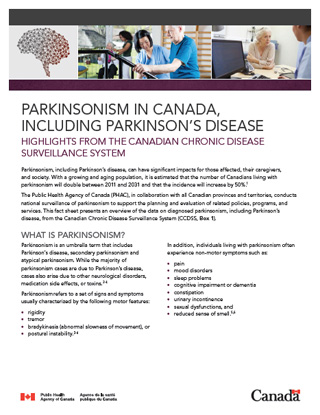 Visit - Canada.ca and Search ‘parkinsonism’ or ‘Parkinson’s disease’