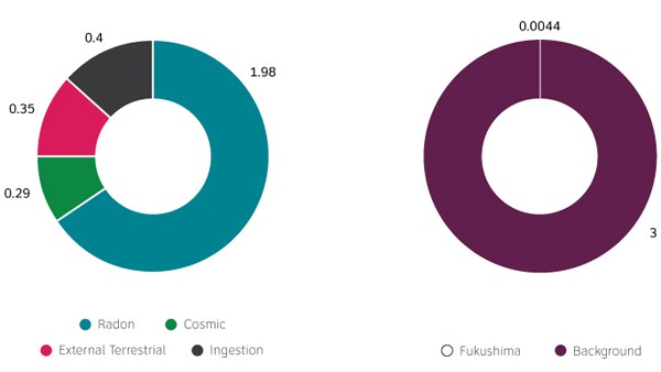 Figure 2: Typical background radiation dose in Canada compared to the dose resulting from the Fukushima Daiichi accident.