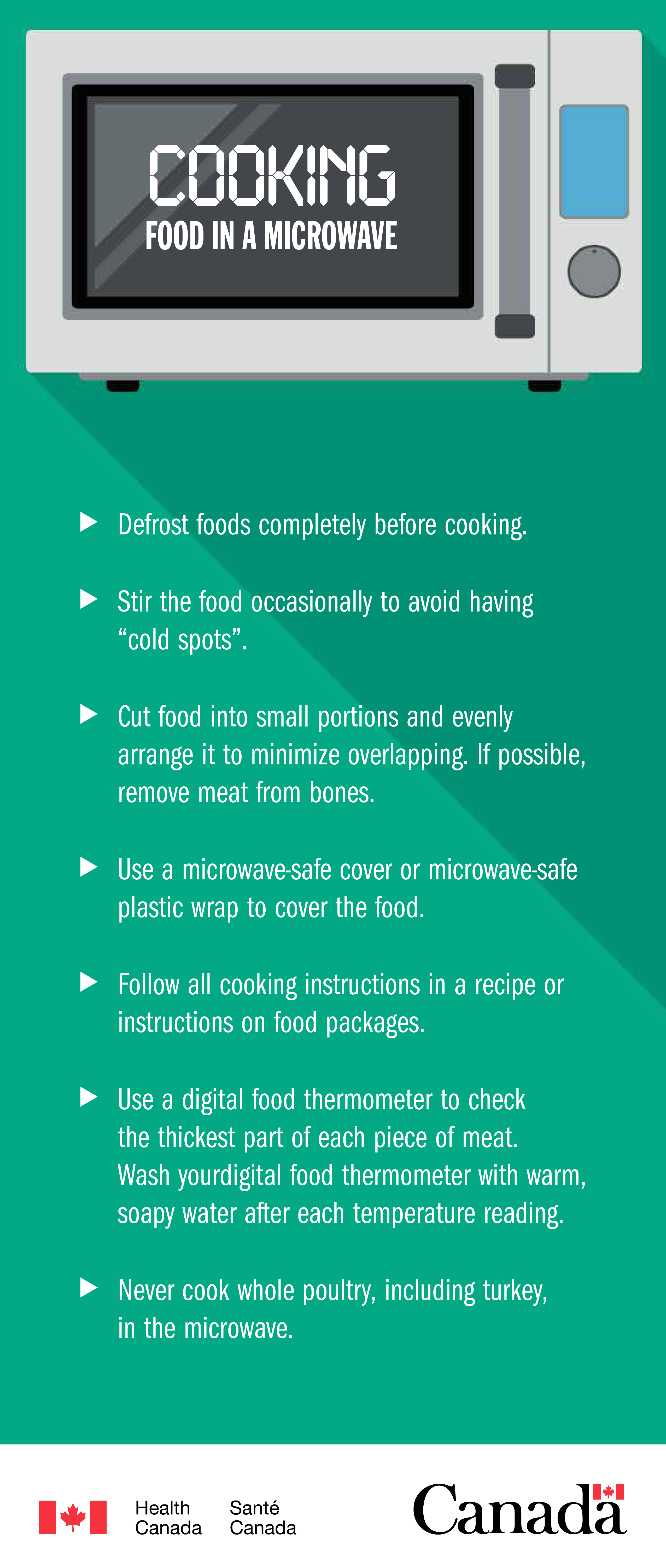 - Follow all cooking instructions in a recipe or instructions on food packages.