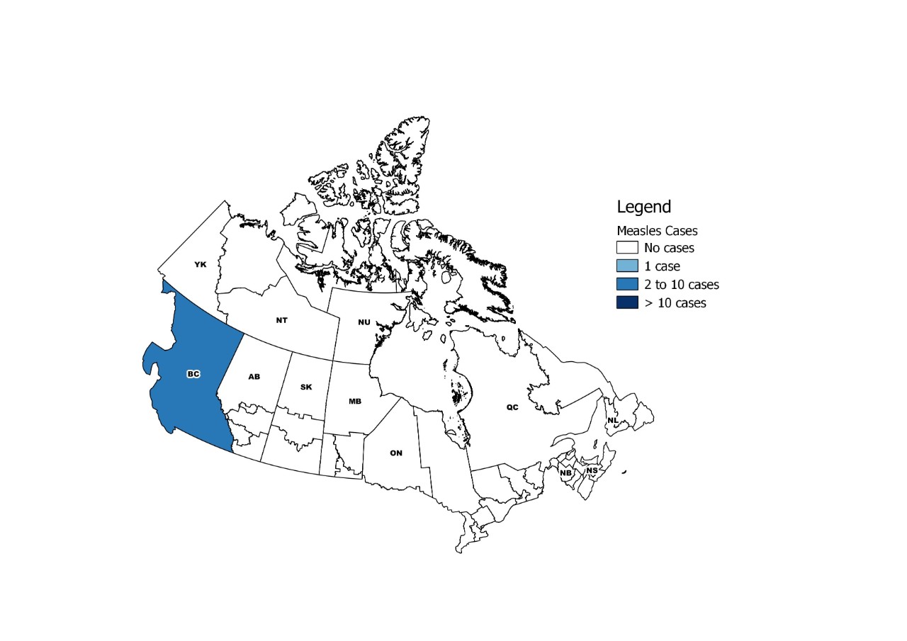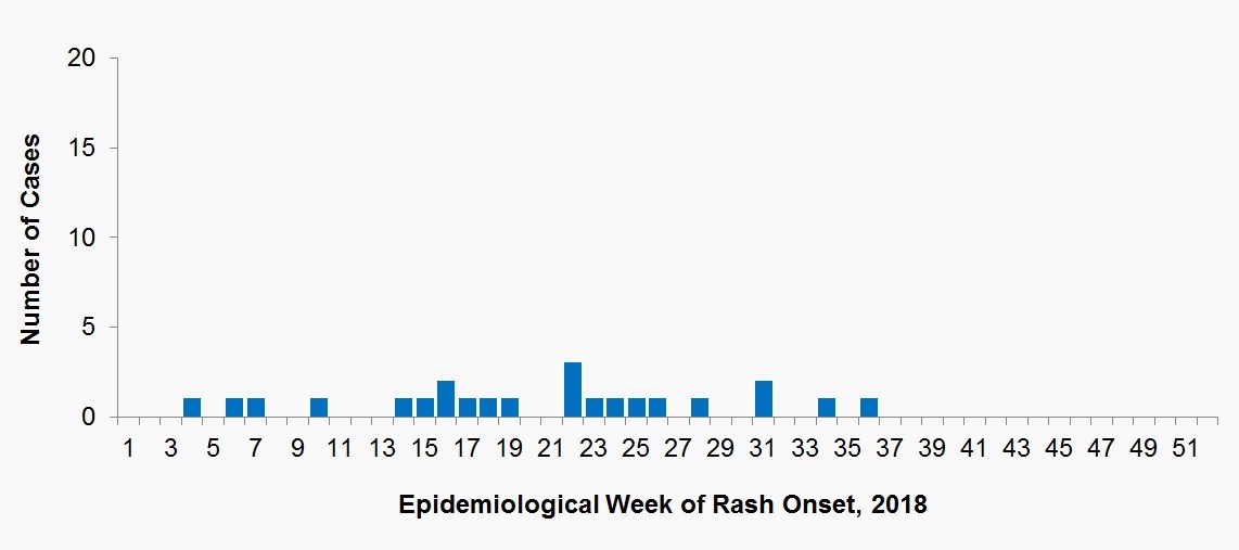 - In Canada, one new case of measles and no cases of rubella were reported in week 36, 2018.