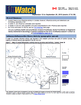 FluWatch report: September 13 to September 26, 2015 (weeks 37 and 38)