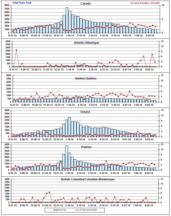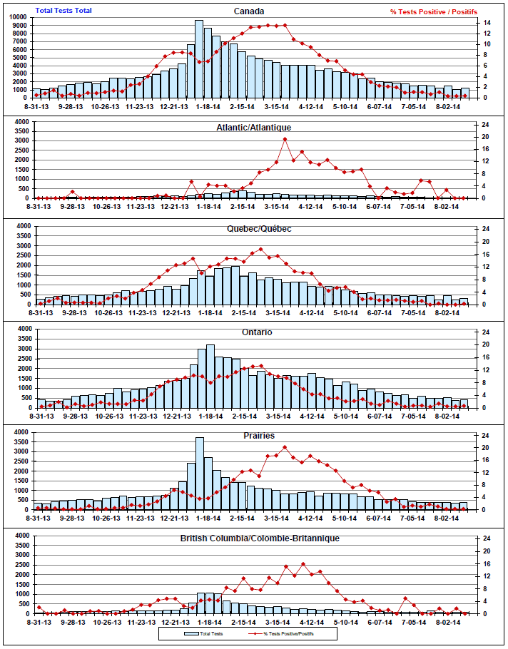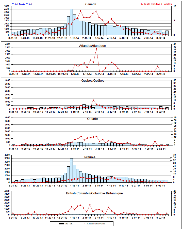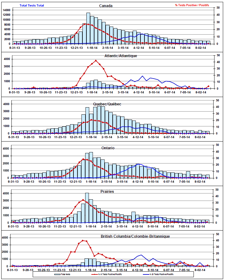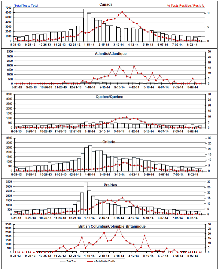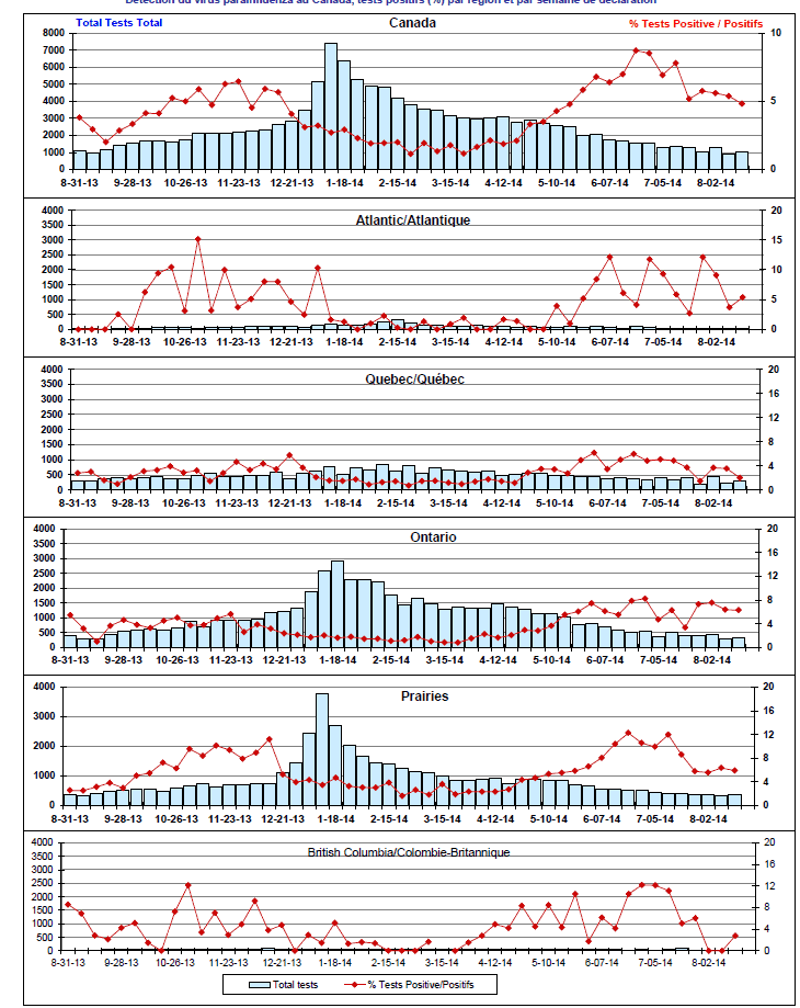 Respiratory Virus Detections/Isolations in Canada, Week 33 ending August 16, 2014