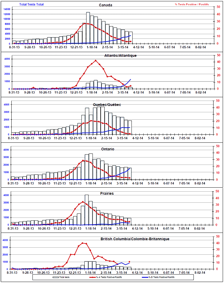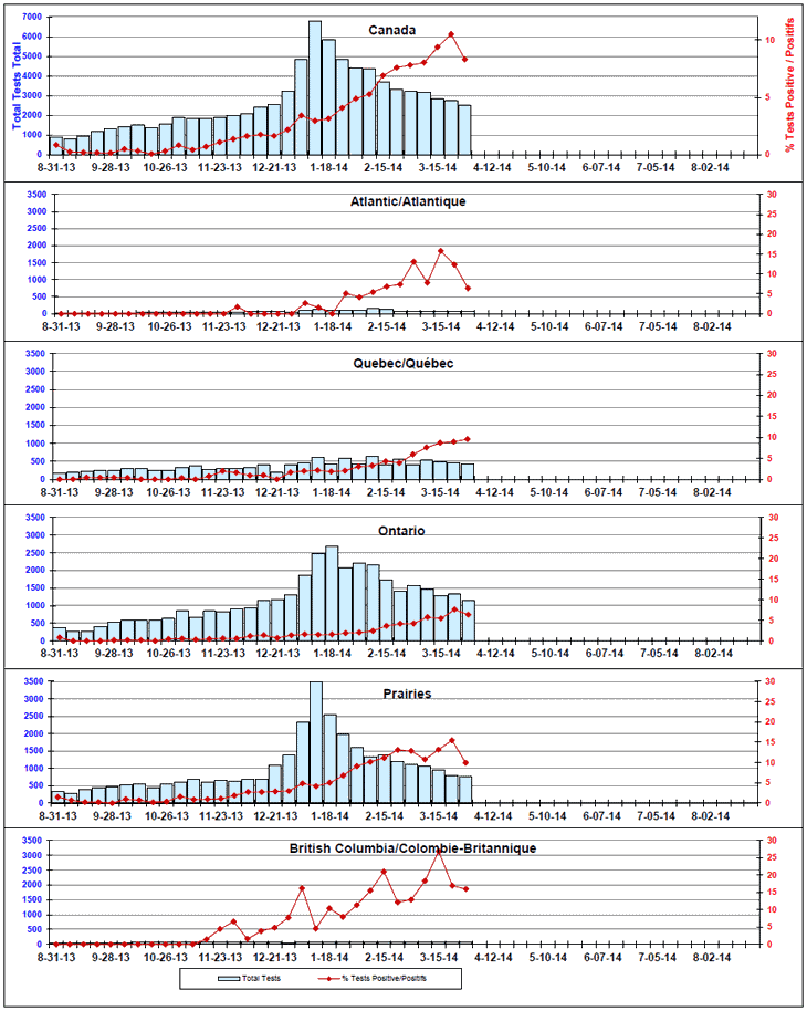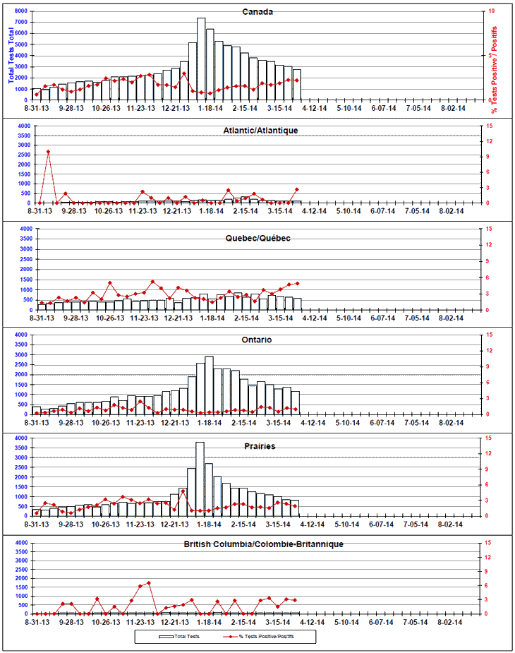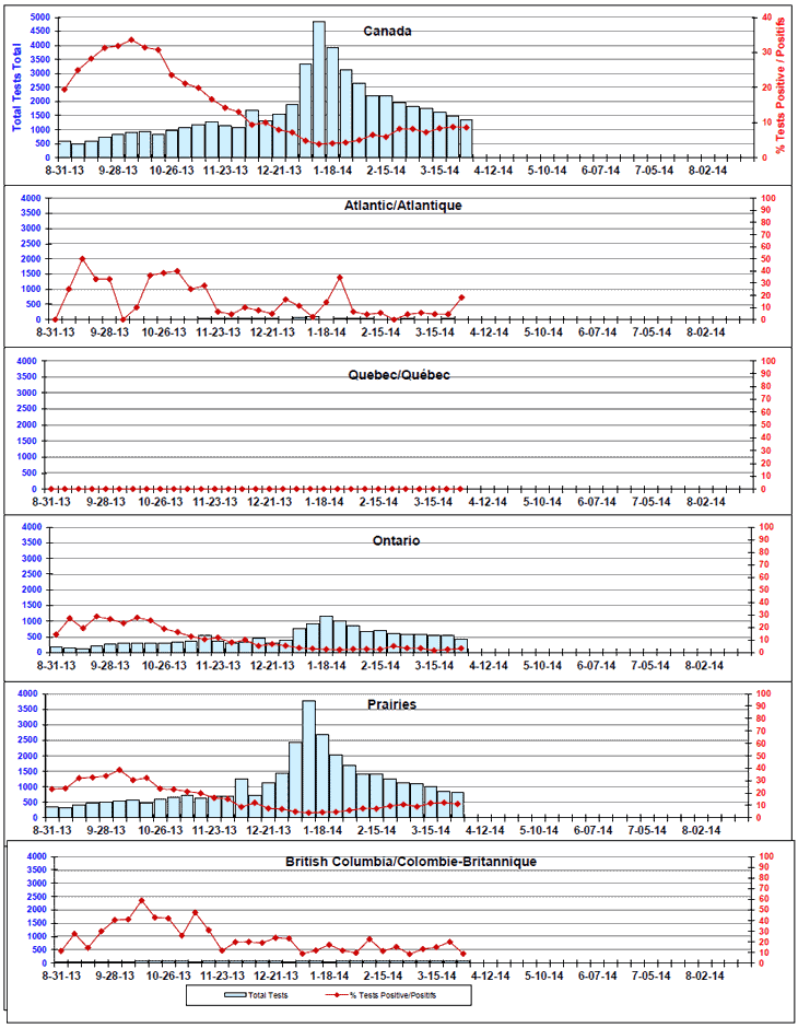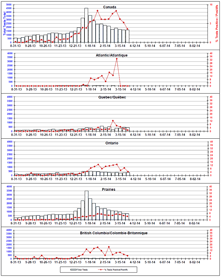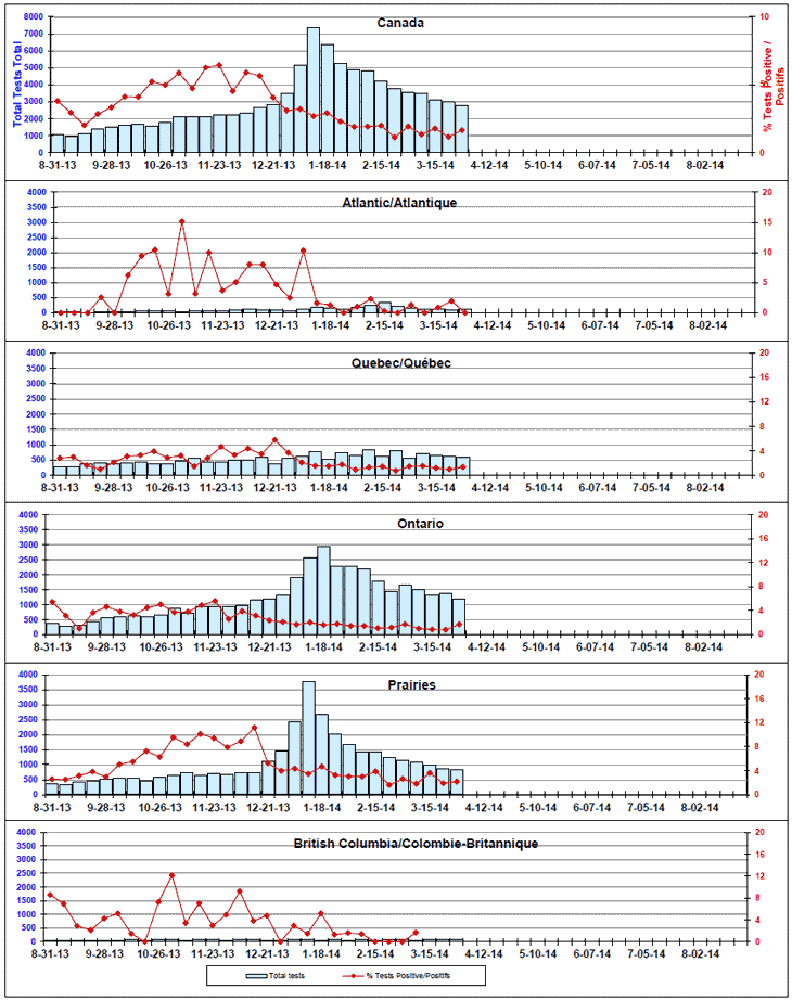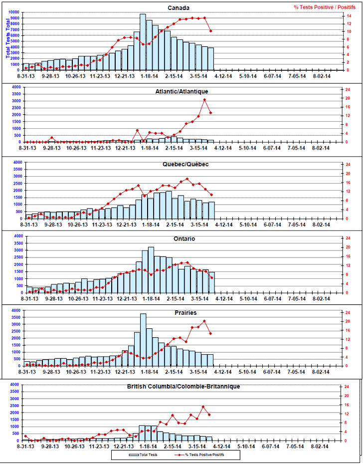 Respiratory Virus Detections/Isolations in Canada, Week 13 ending March 29, 2014