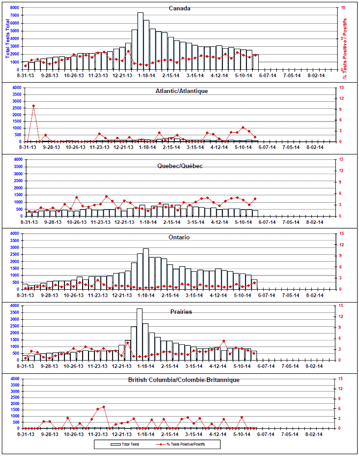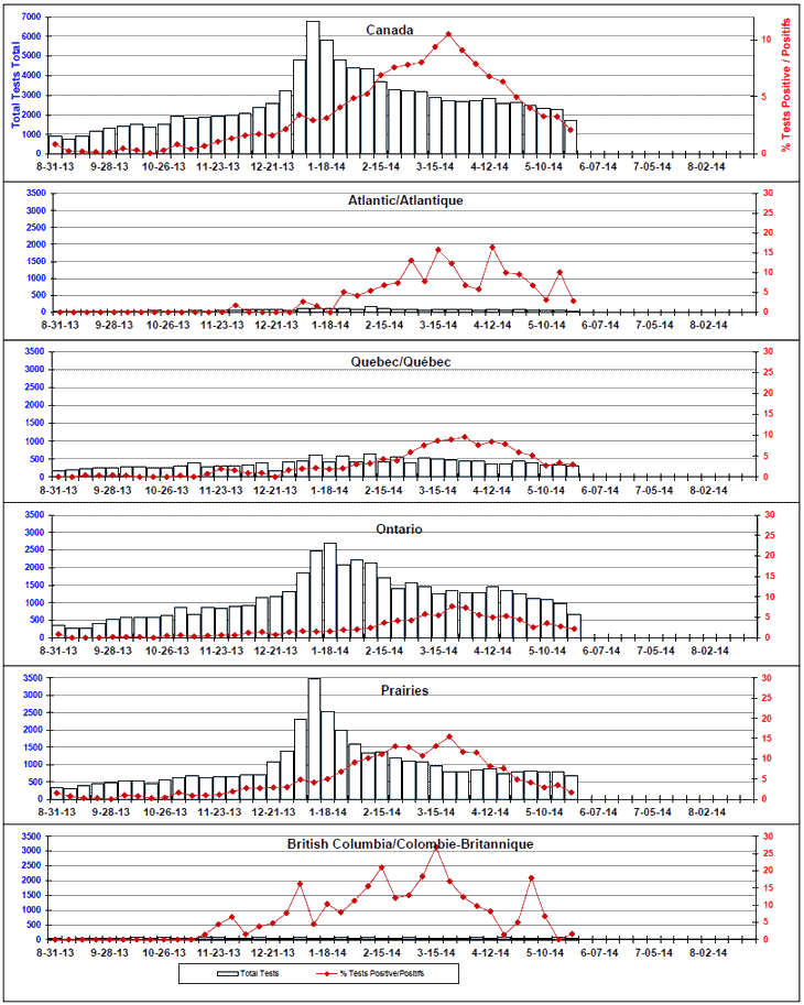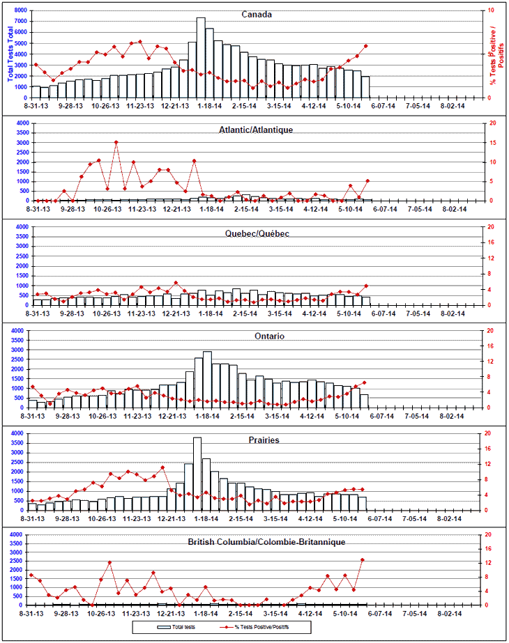 Respiratory Virus Detections/Isolations in Canada, Week 21 ending May 24, 2014