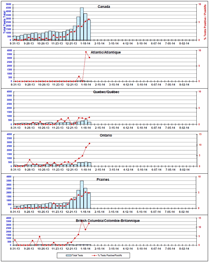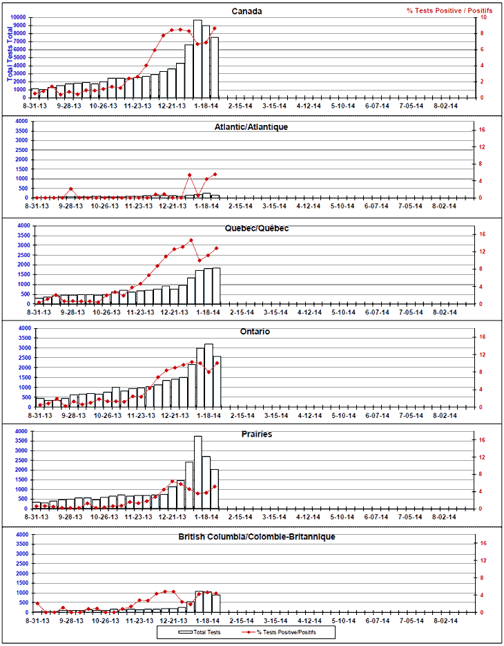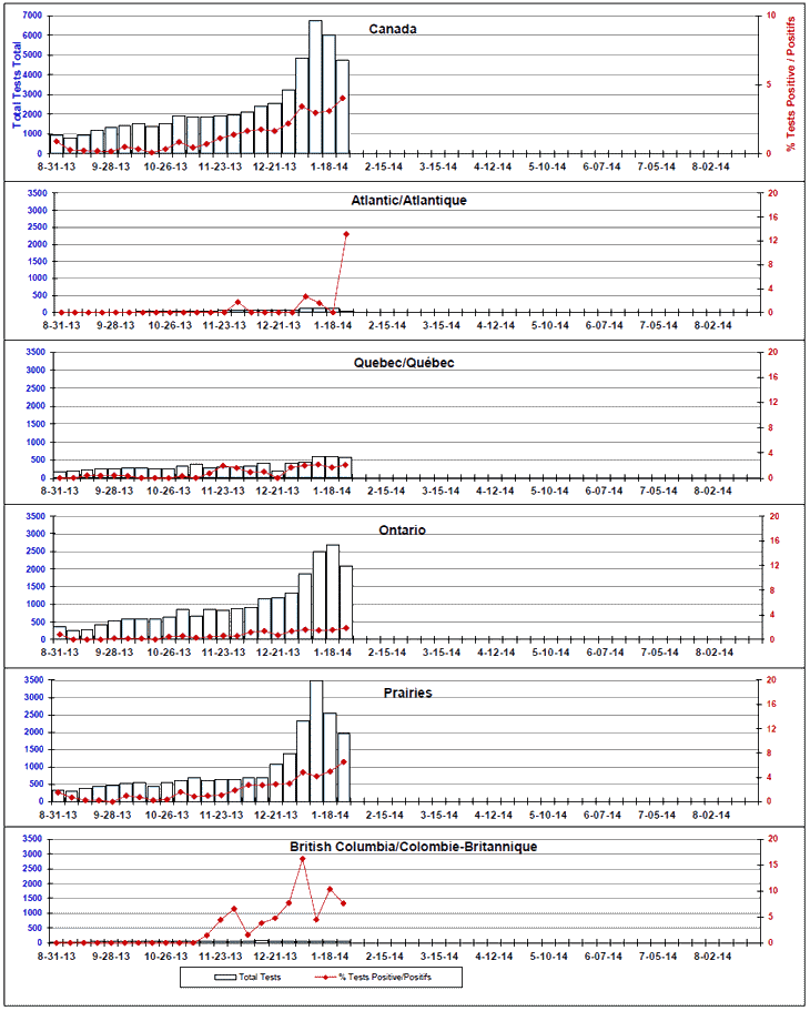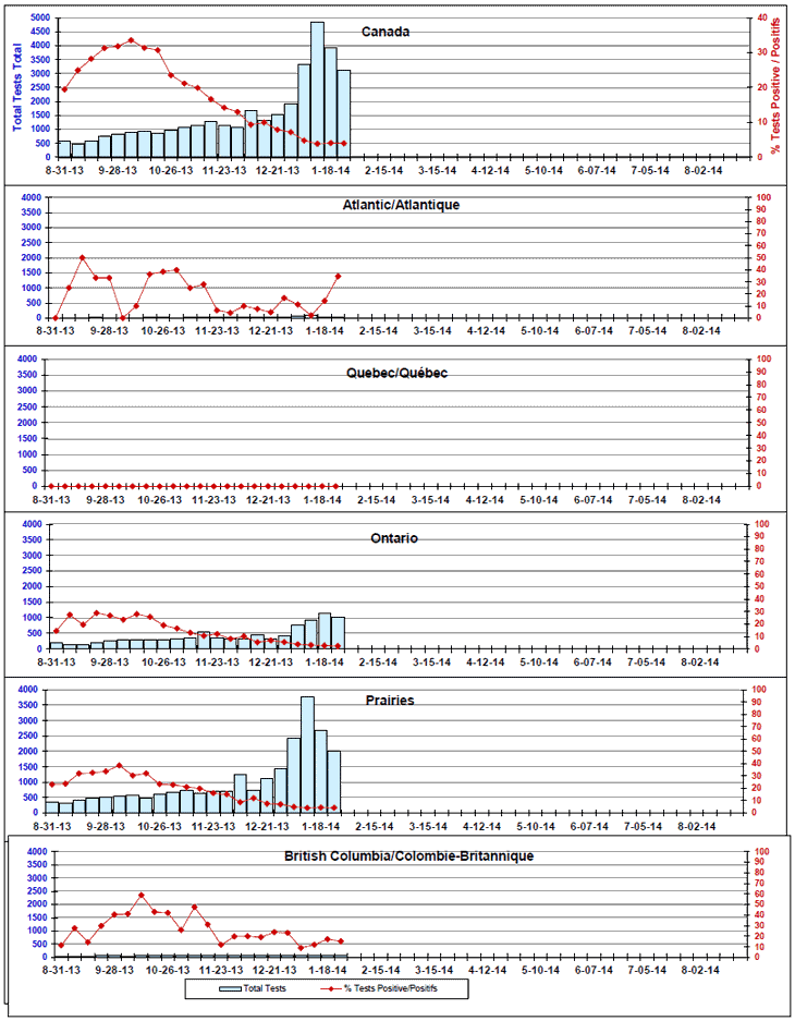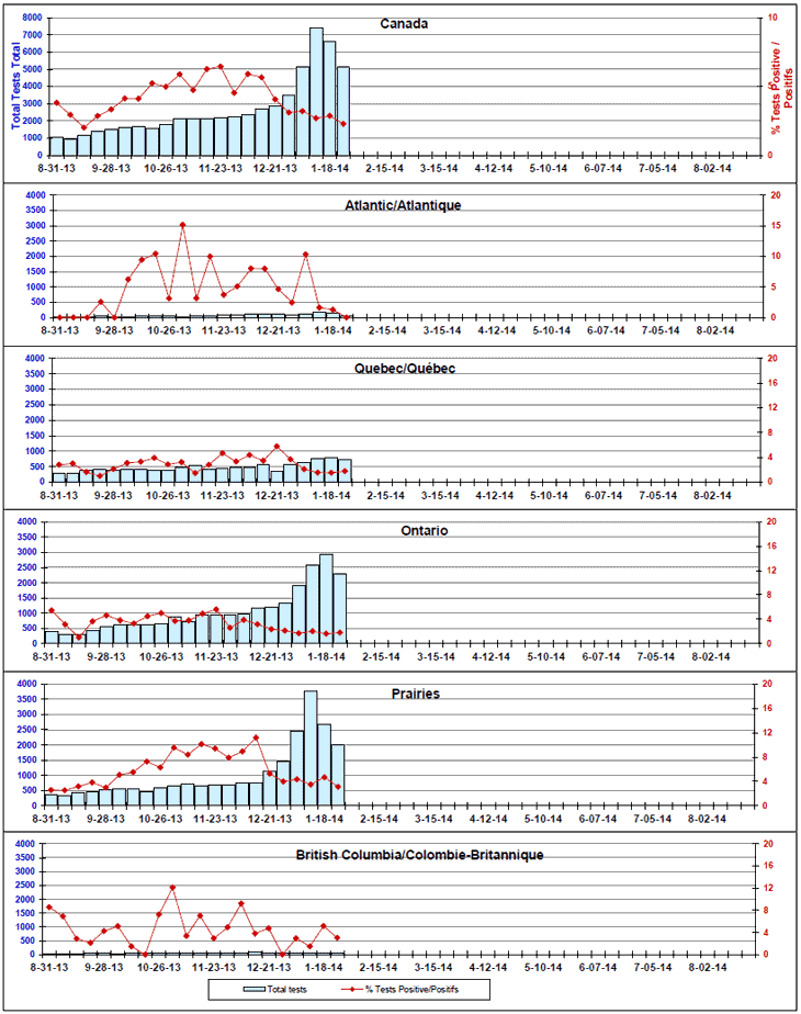 Respiratory Virus Detections/Isolations in Canada, Week 4 ending January 25, 2014