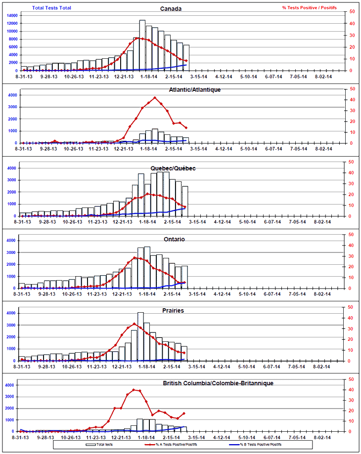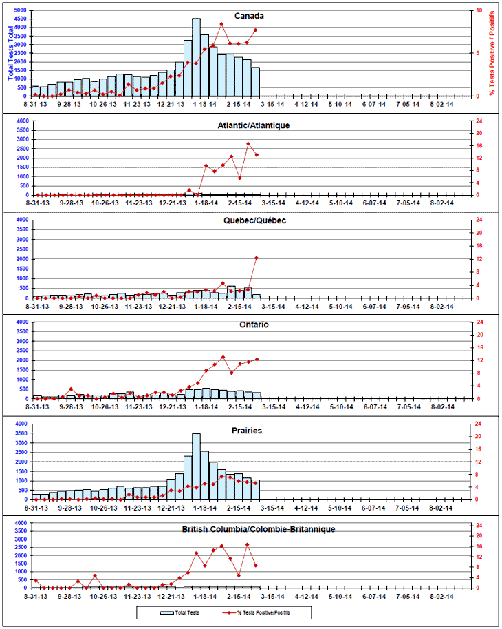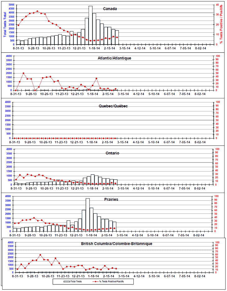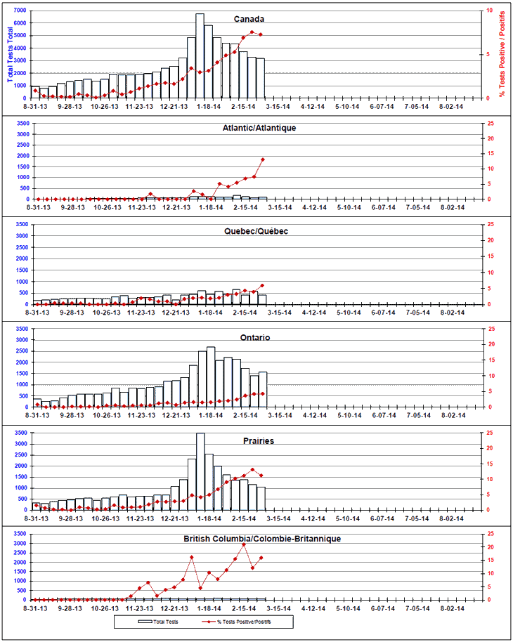 Respiratory Virus Detections/Isolations in Canada, Week 9 ending March 1, 2014