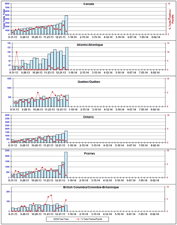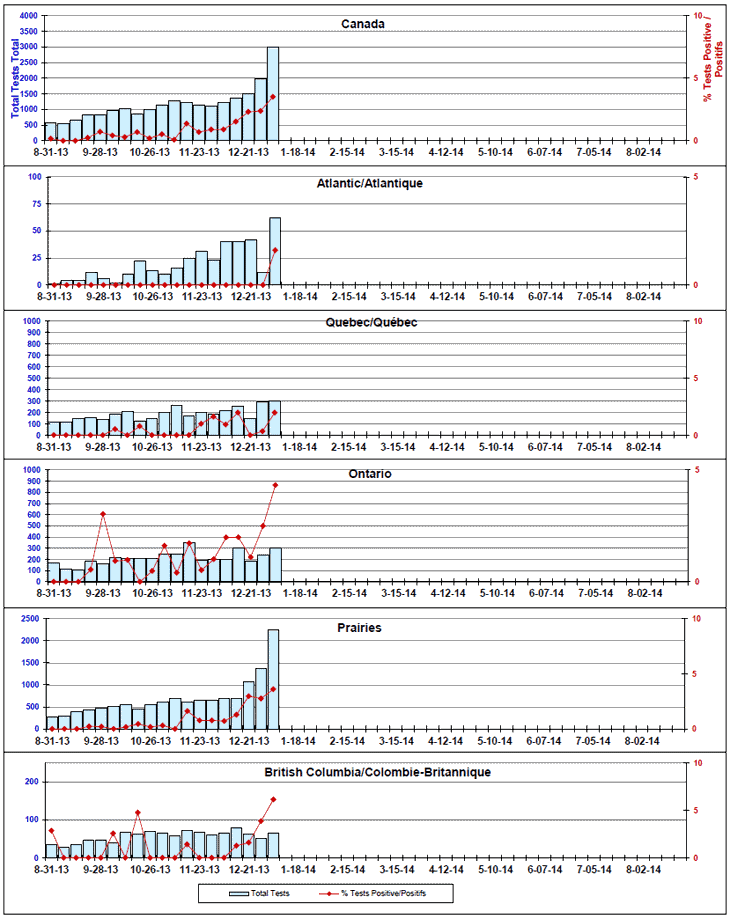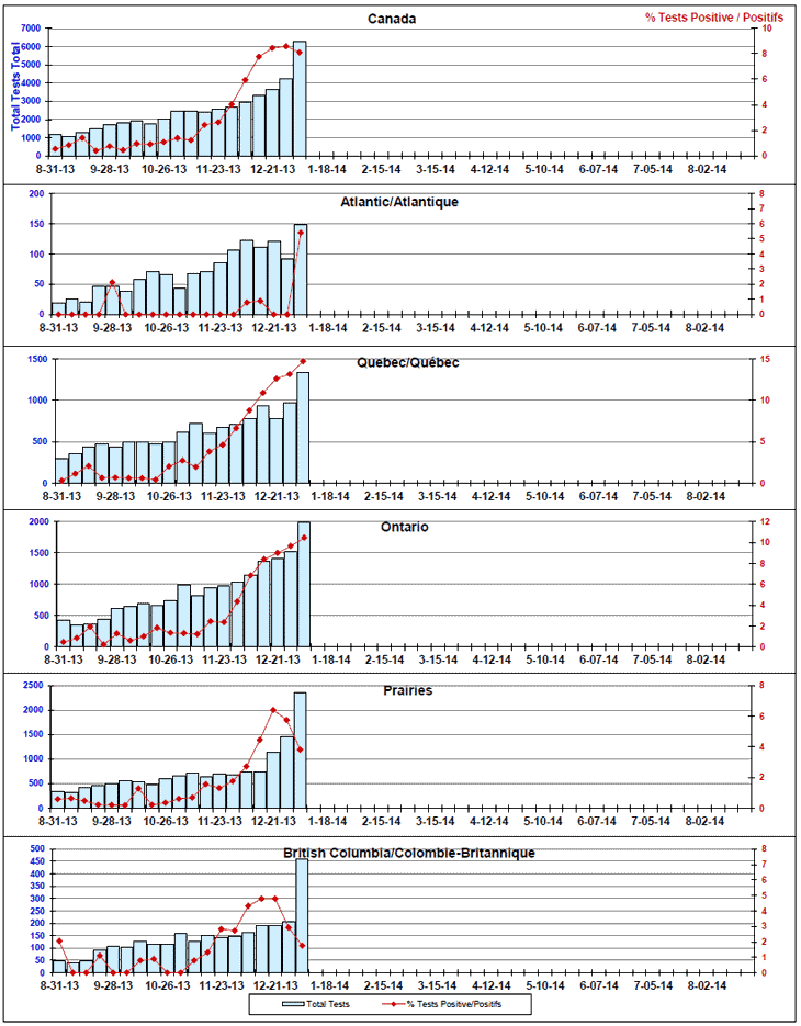 Respiratory Virus Detections/Isolations in Canada, Week 1 ending January 4, 2014