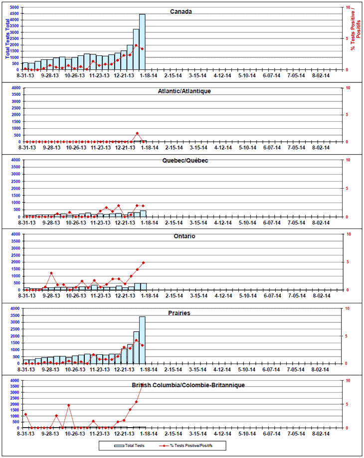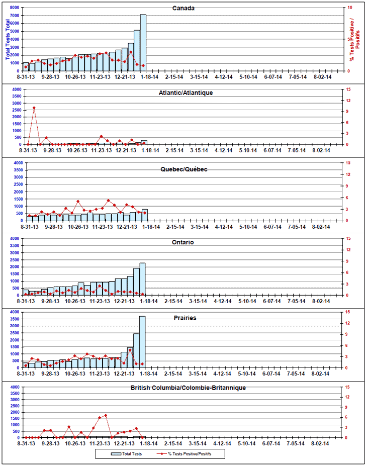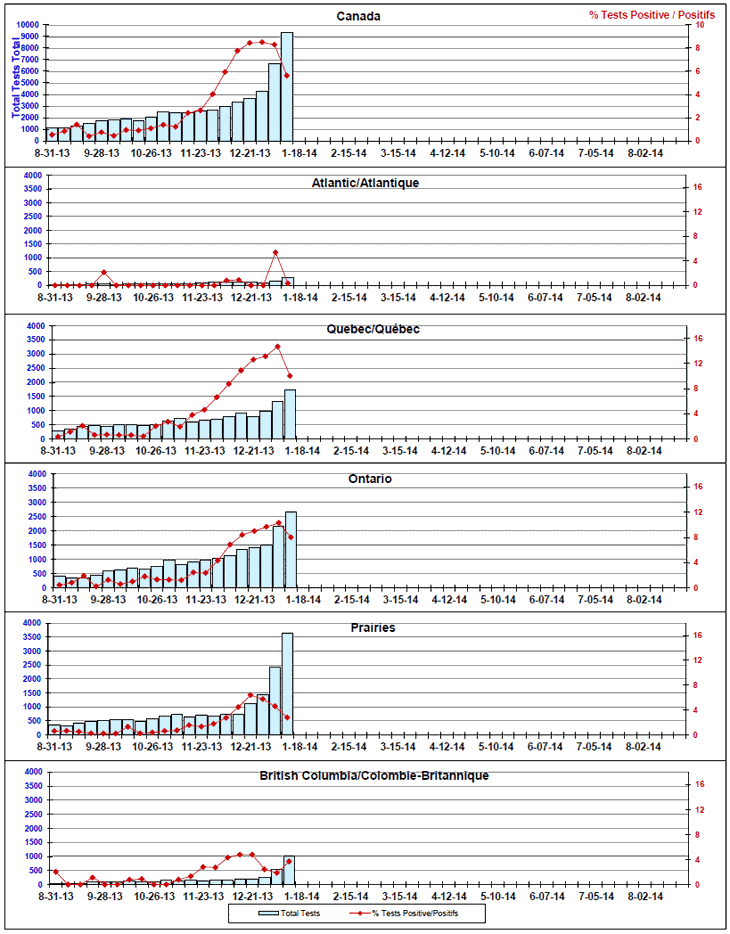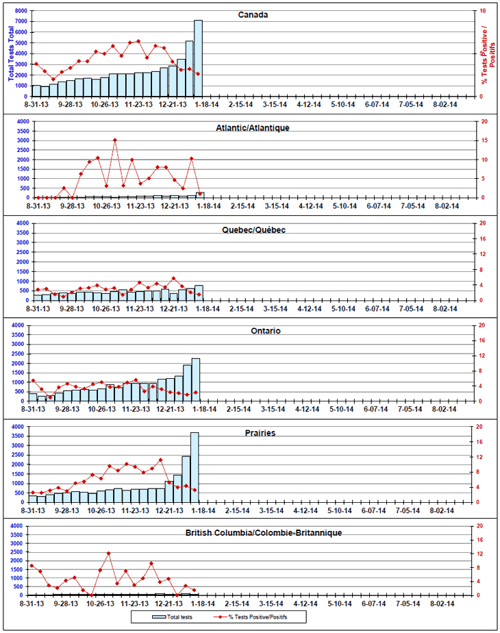 Respiratory Virus Detections/Isolations in Canada, Week 2 ending January 11, 2014