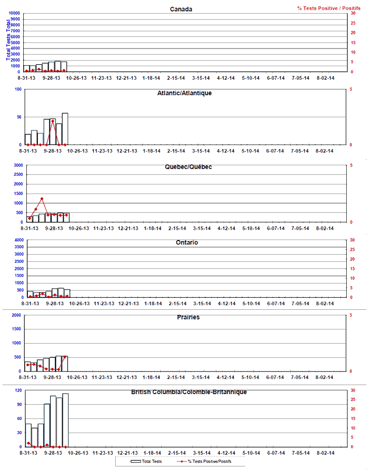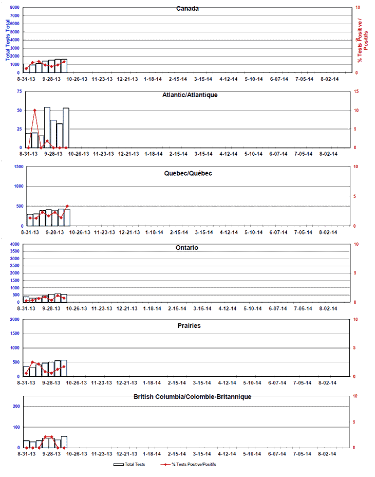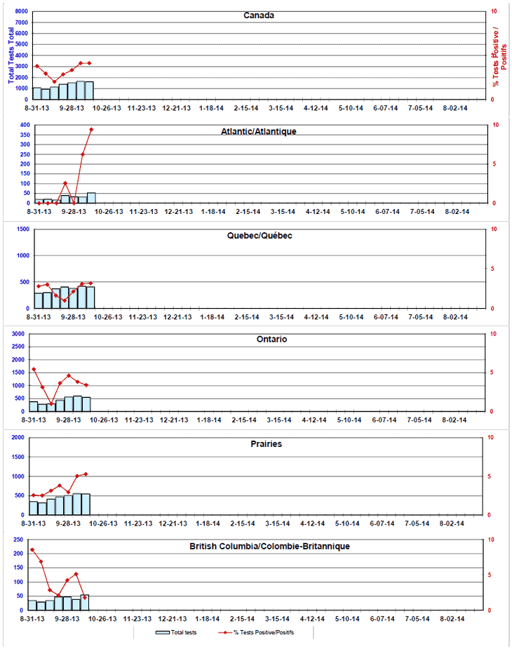 Respiratory Virus Detections/Isolations in Canada, Week 41 ending October 12, 2013