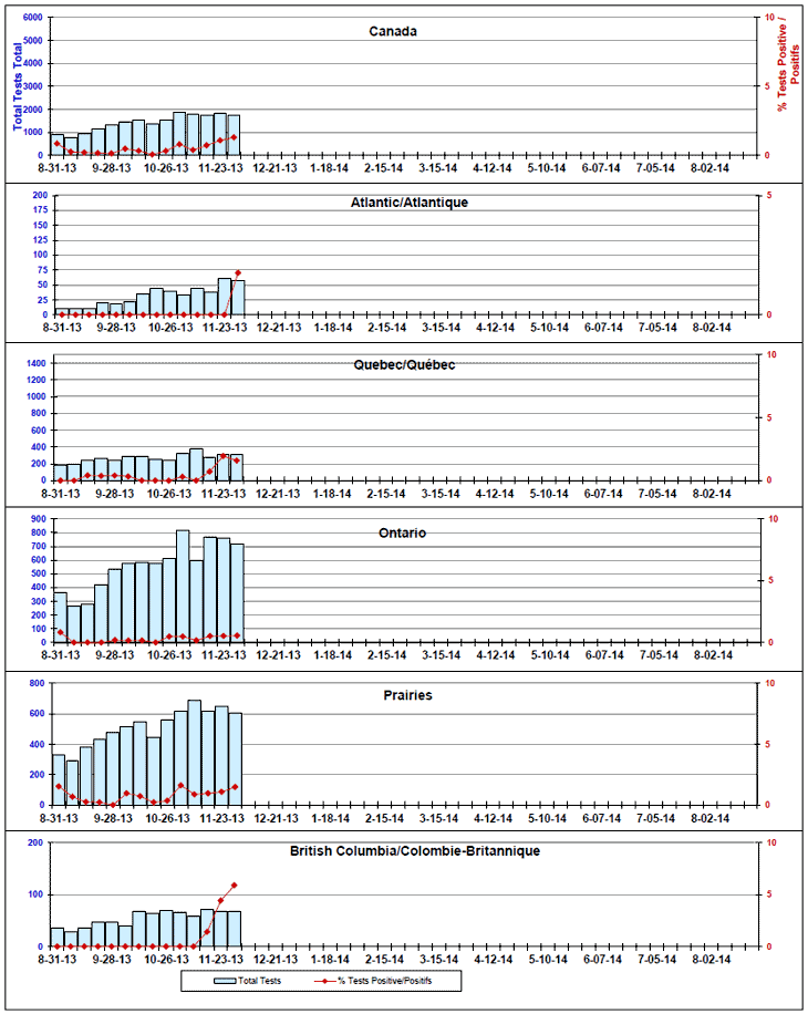 Respiratory Virus Detections/Isolations in Canada, Week 48 ending November 30, 2013