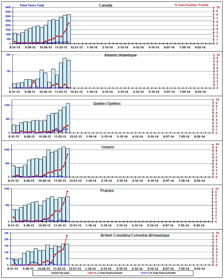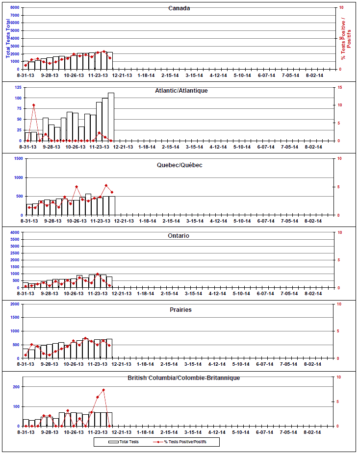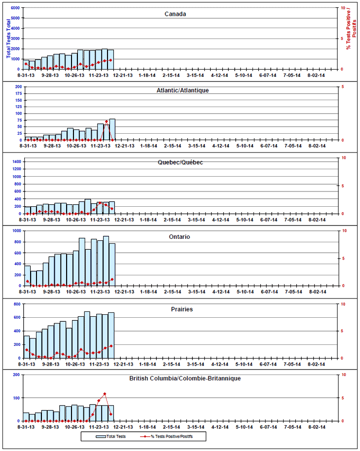 Respiratory Virus Detections/Isolations in Canada, Week 49 ending December 7, 2013