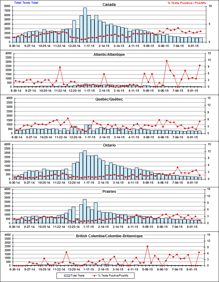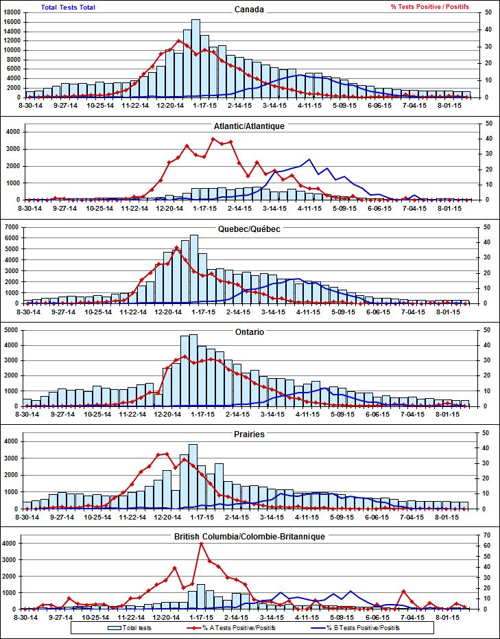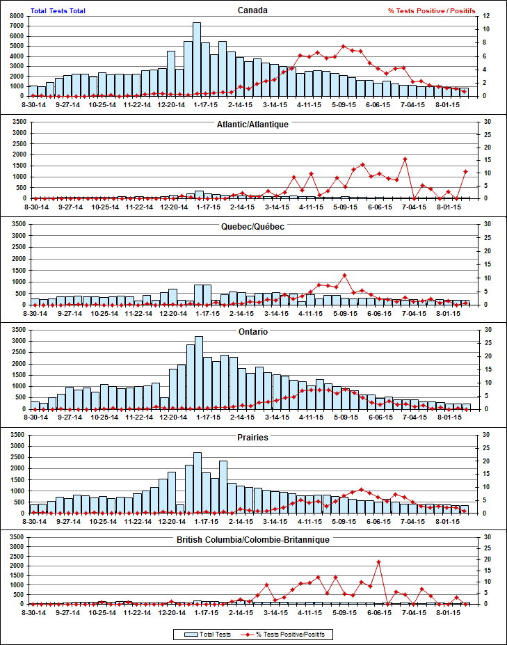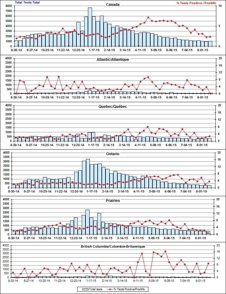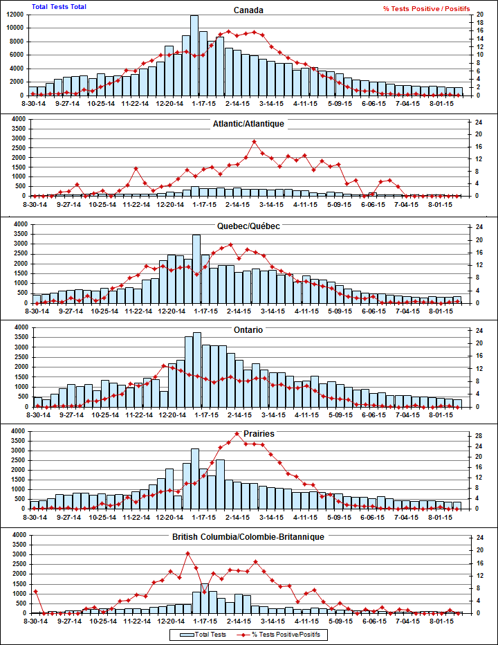 Respiratory Virus Detections/Isolations in Canada, Week 32 ending August 15, 2015