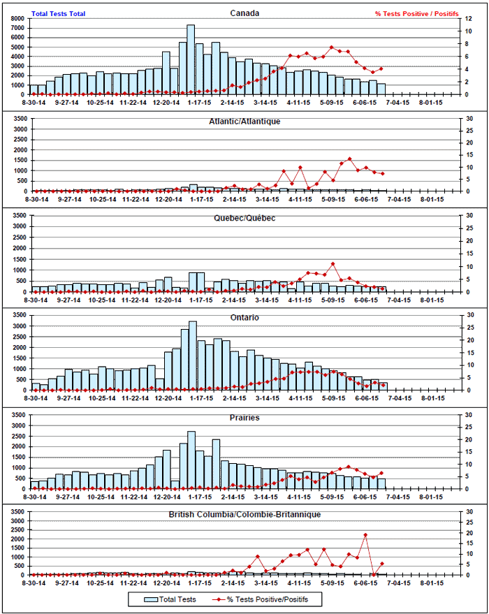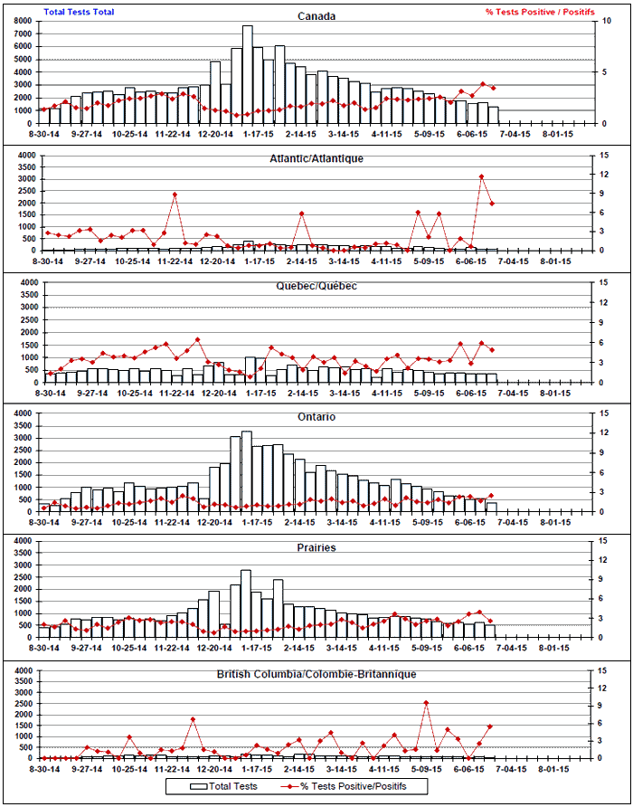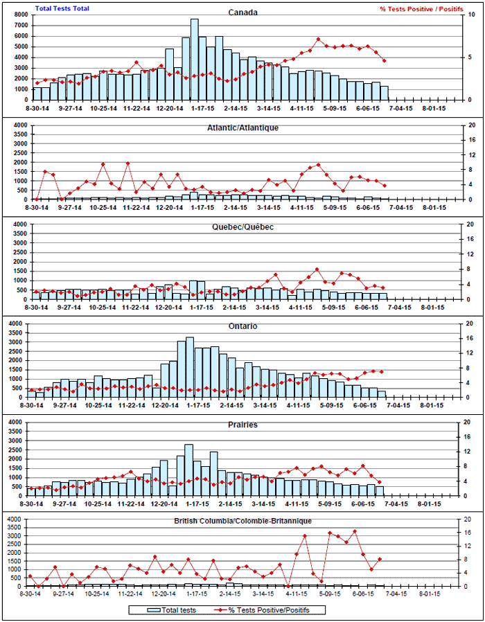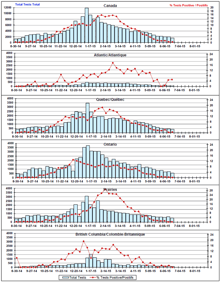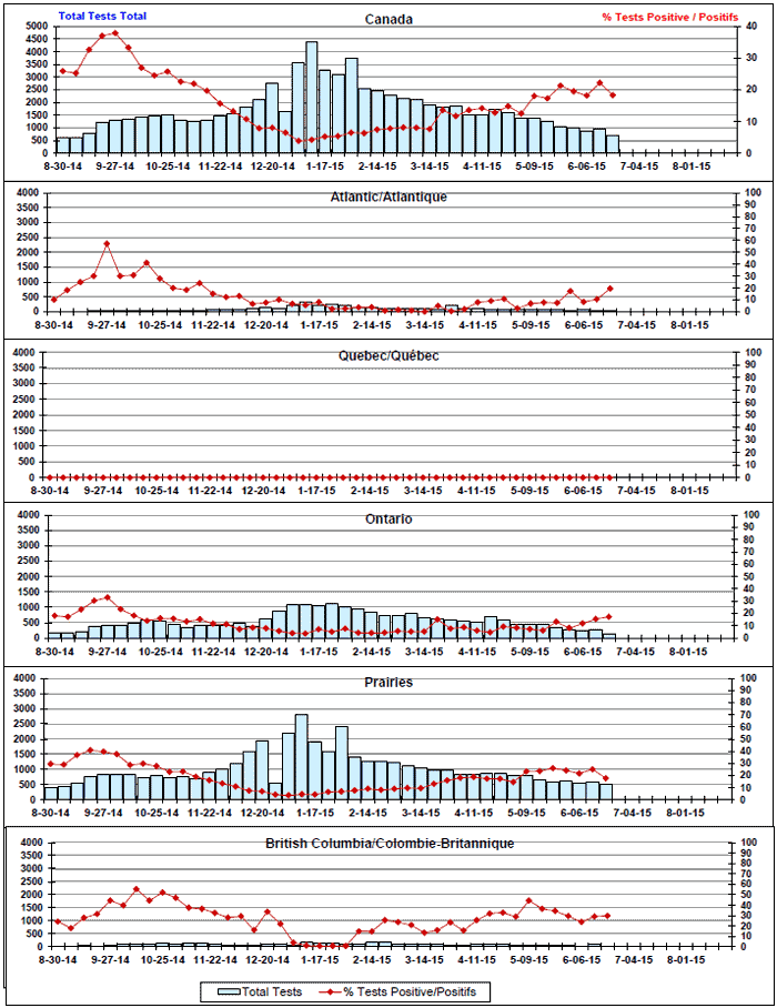 Respiratory Virus Detections/Isolations in Canada, Week 24 ending June 20, 2015