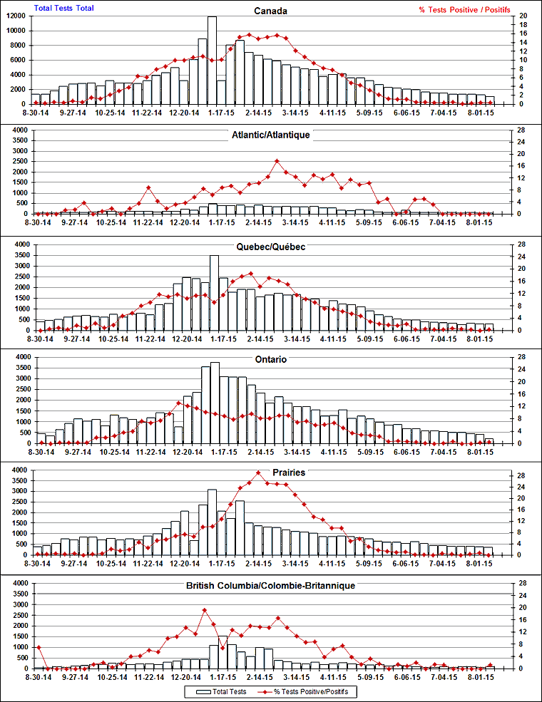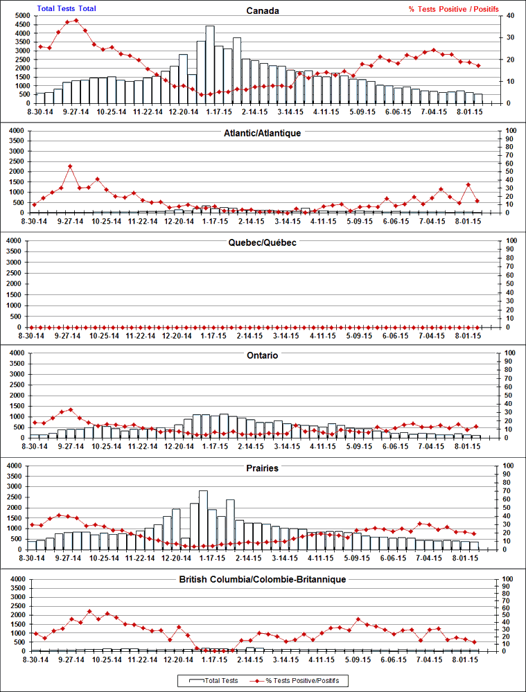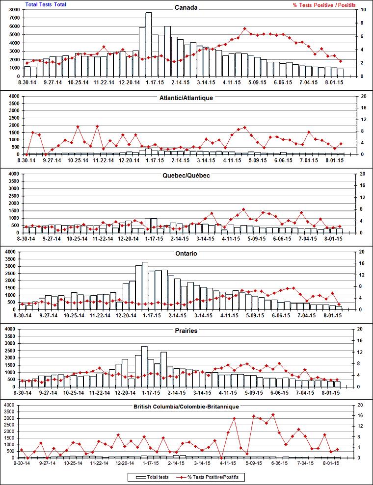 Respiratory Virus Detections/Isolations in Canada, Week 31 ending August 8, 2015