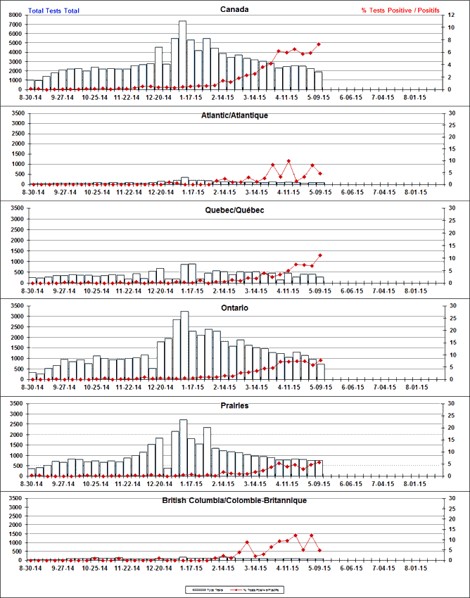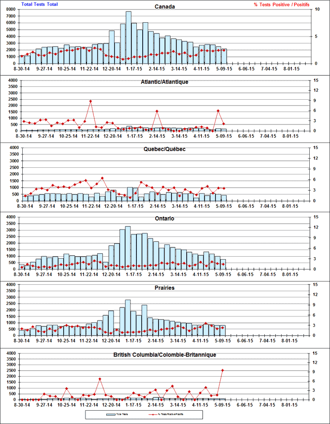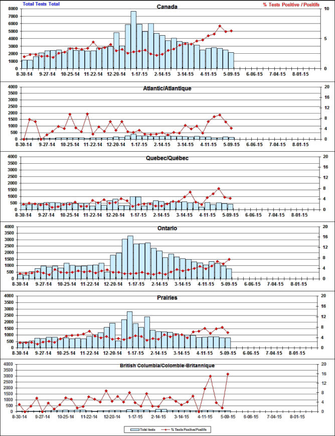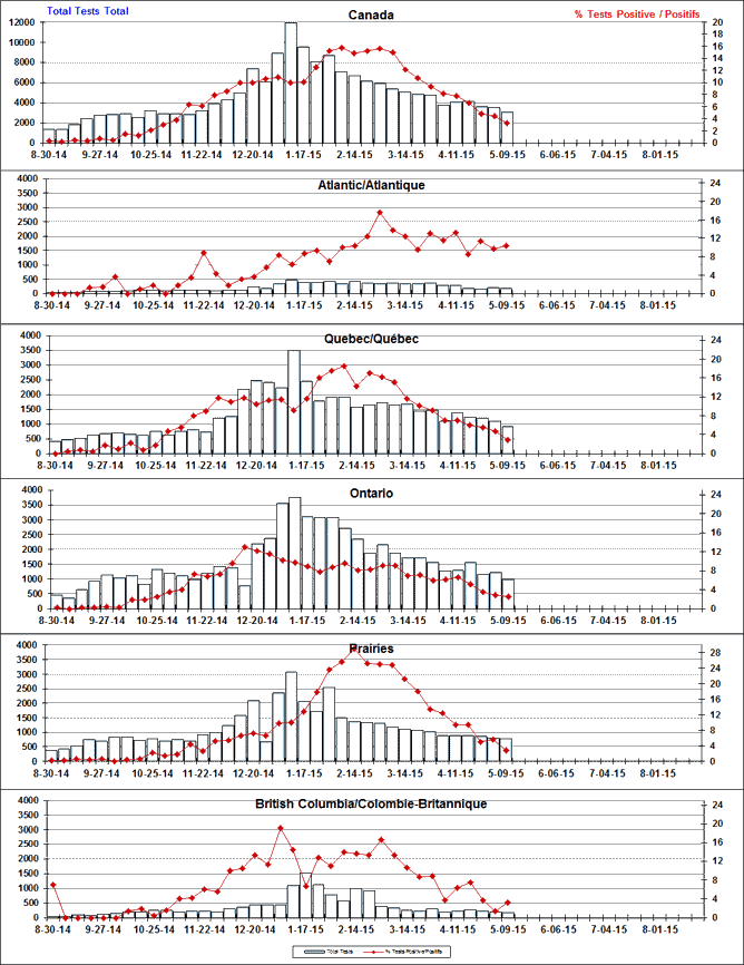 Respiratory Virus Detections/Isolations in Canada, Week 18 ending May 9, 2015