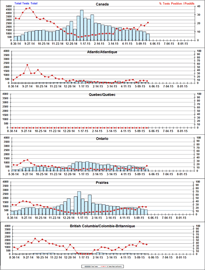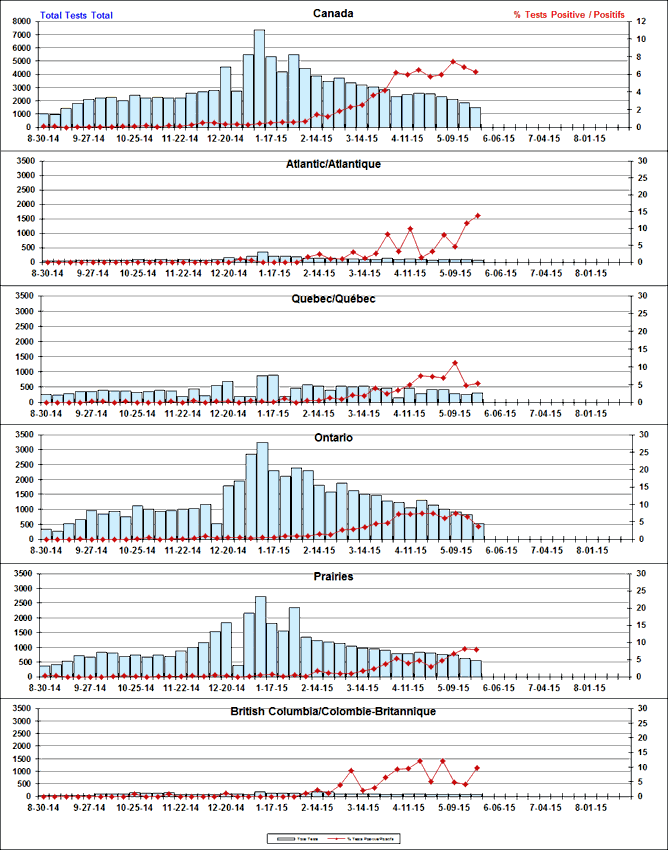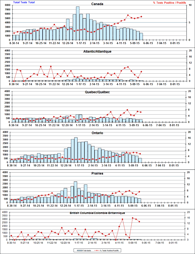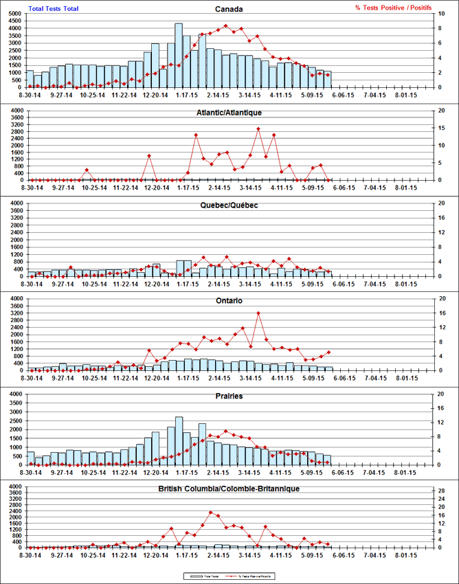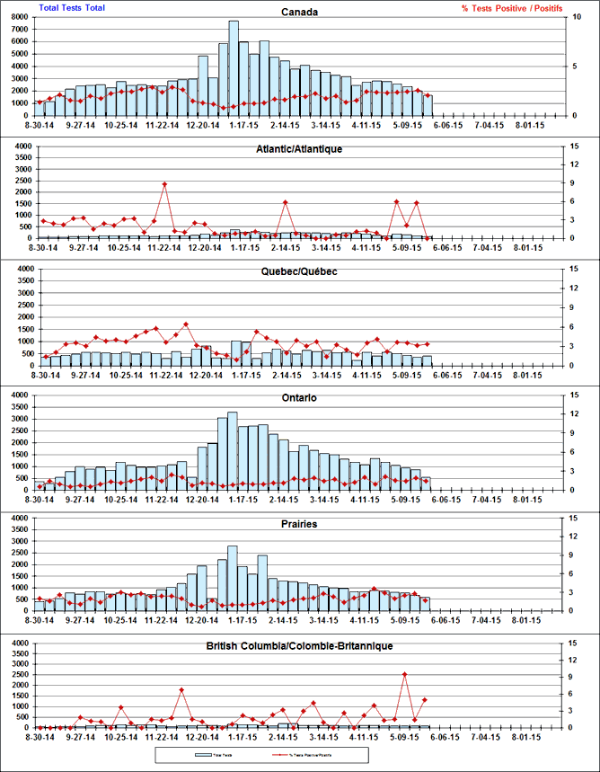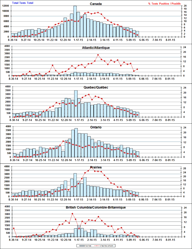 Respiratory Virus Detections/Isolations in Canada, Week 20 ending May 23, 2015