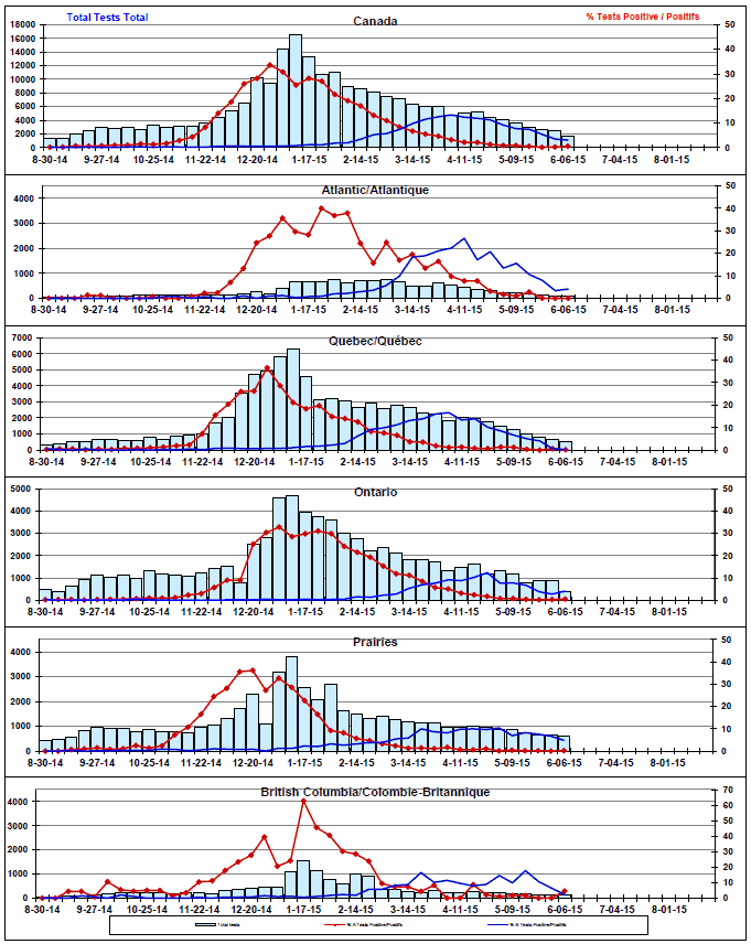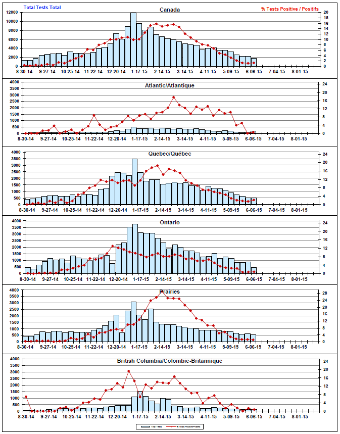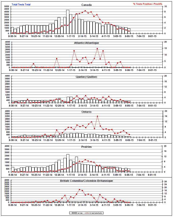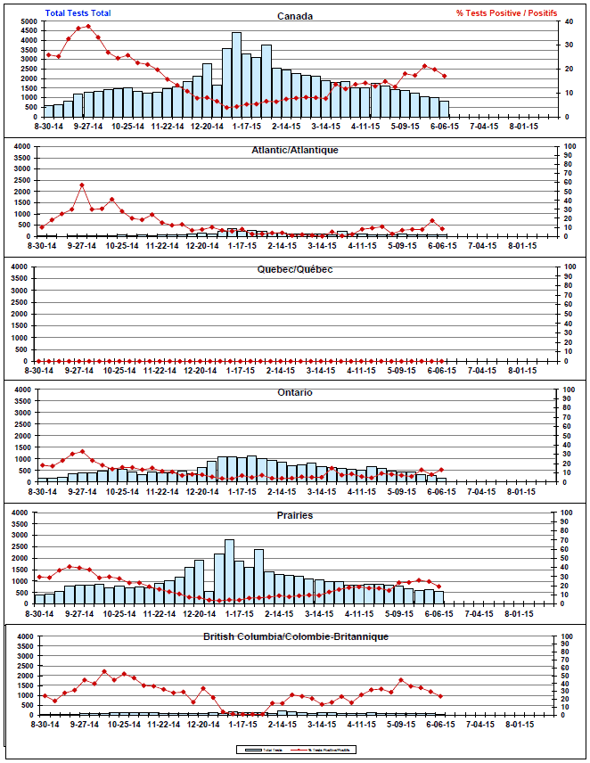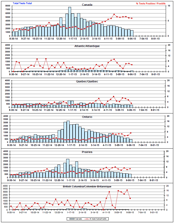 Respiratory Virus Detections/Isolations in Canada, Week 22 ending June 6, 2015
