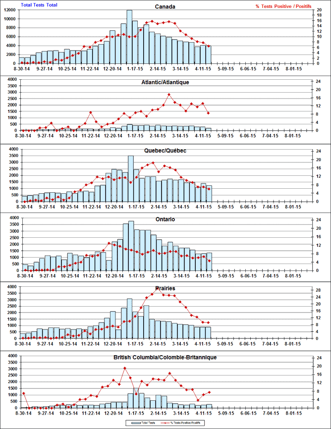 Respiratory Virus Detections/Isolations in Canada, Week 15 ending April 18, 2015