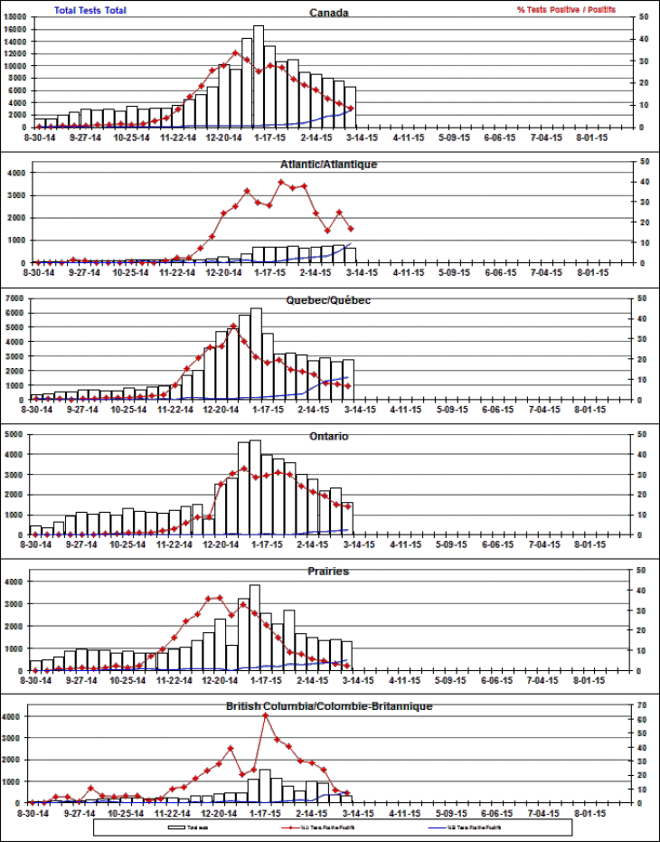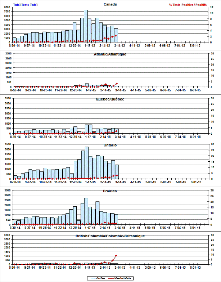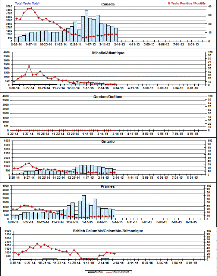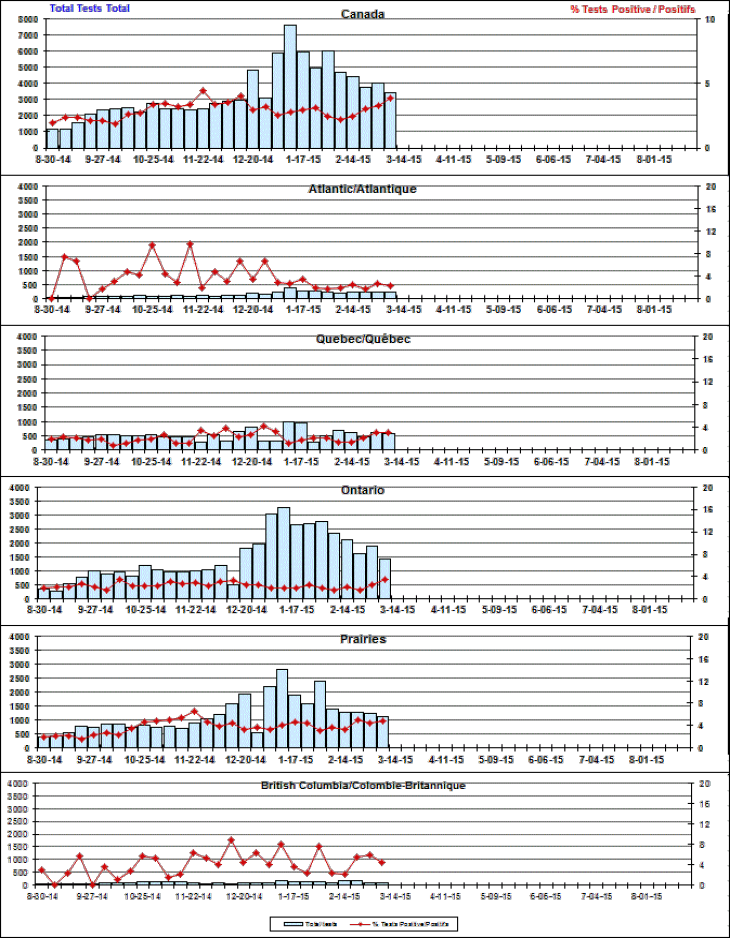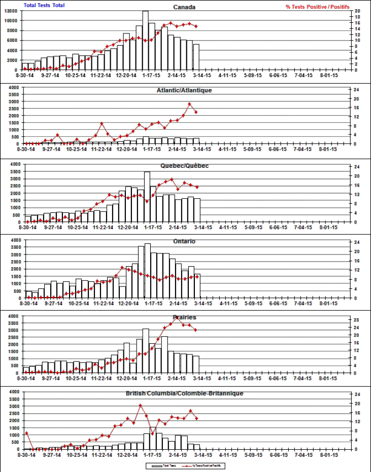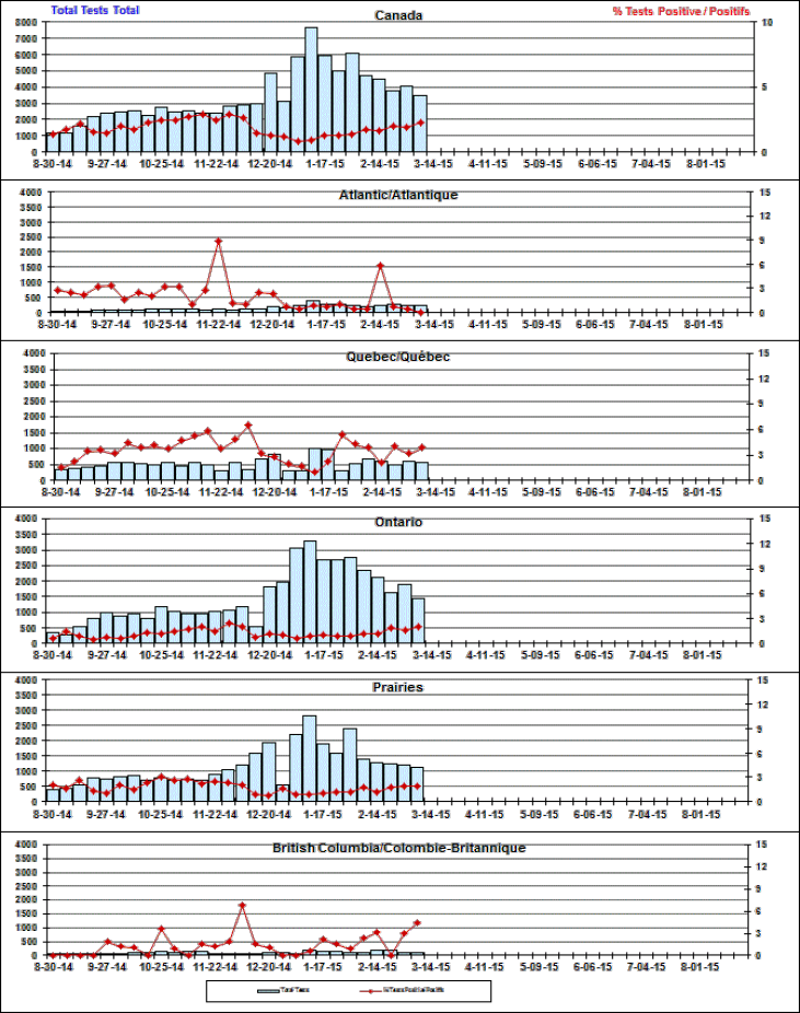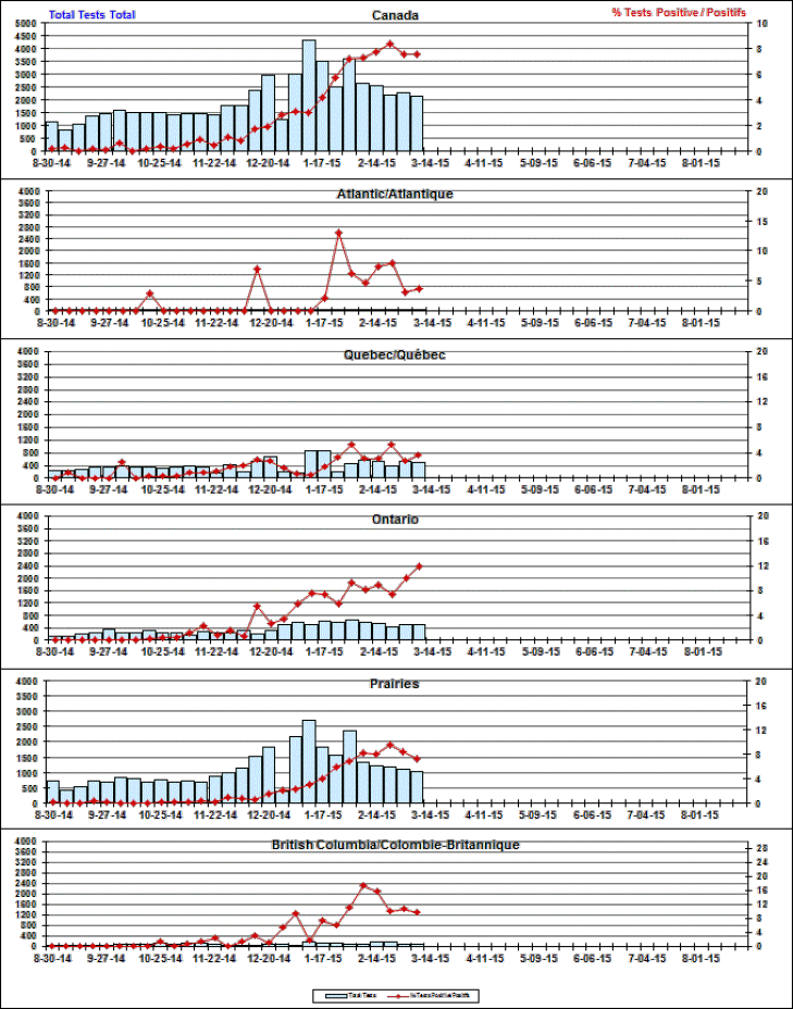 Respiratory Virus Detections/Isolations in Canada, Week 9 ending March 7, 2015