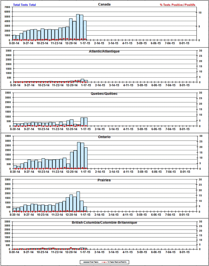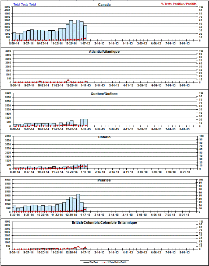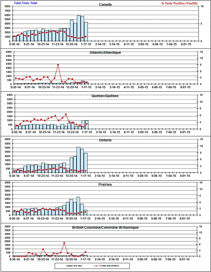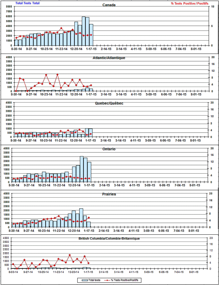 Respiratory Virus Detections/Isolations in Canada, Week 2 ending January 17, 2015
