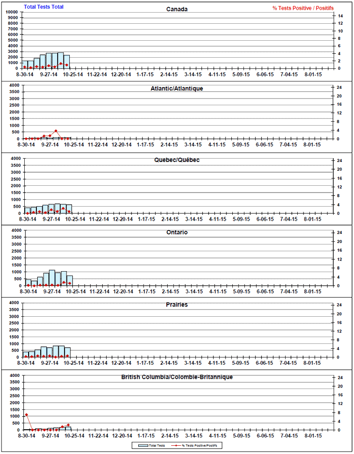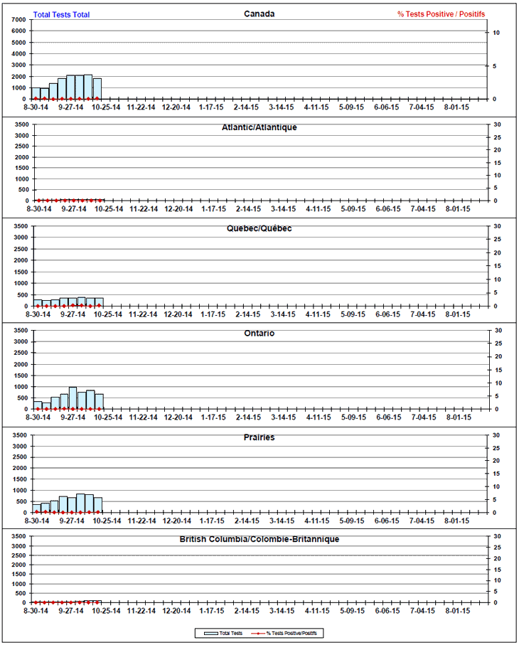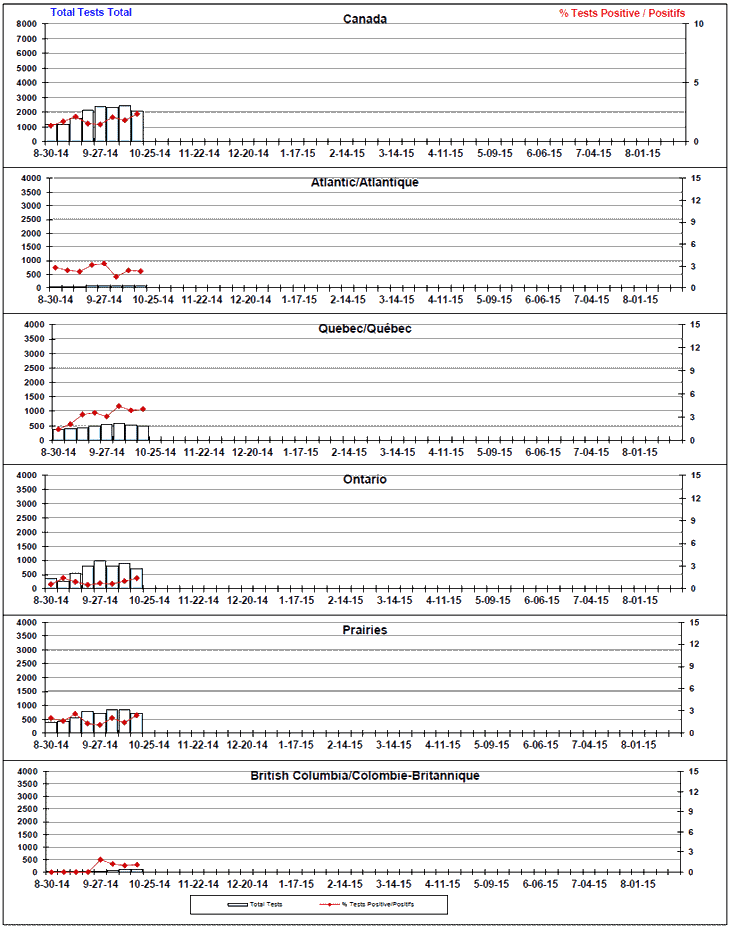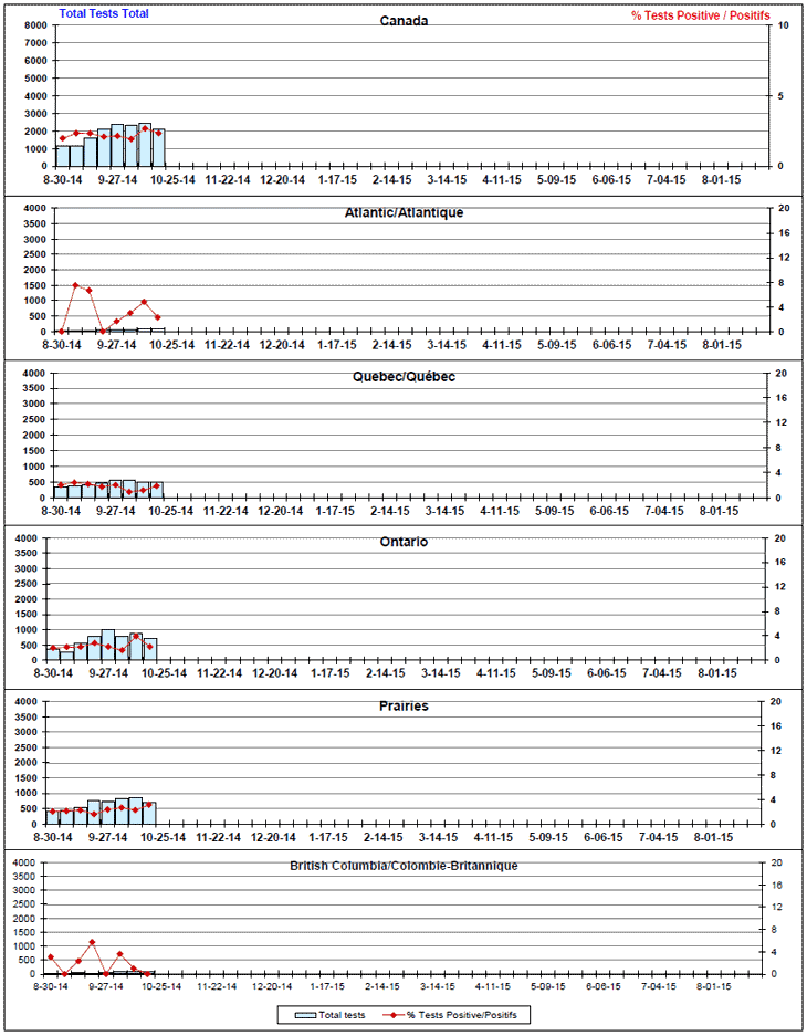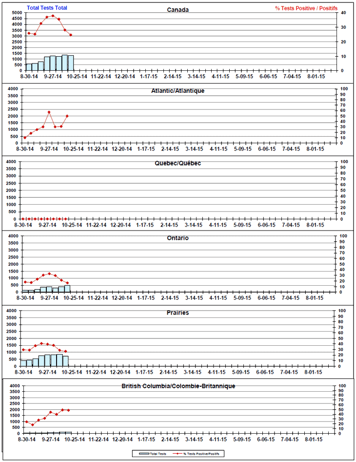 Respiratory Virus Detections/Isolations in Canada, Week 42 ending October 18, 2014