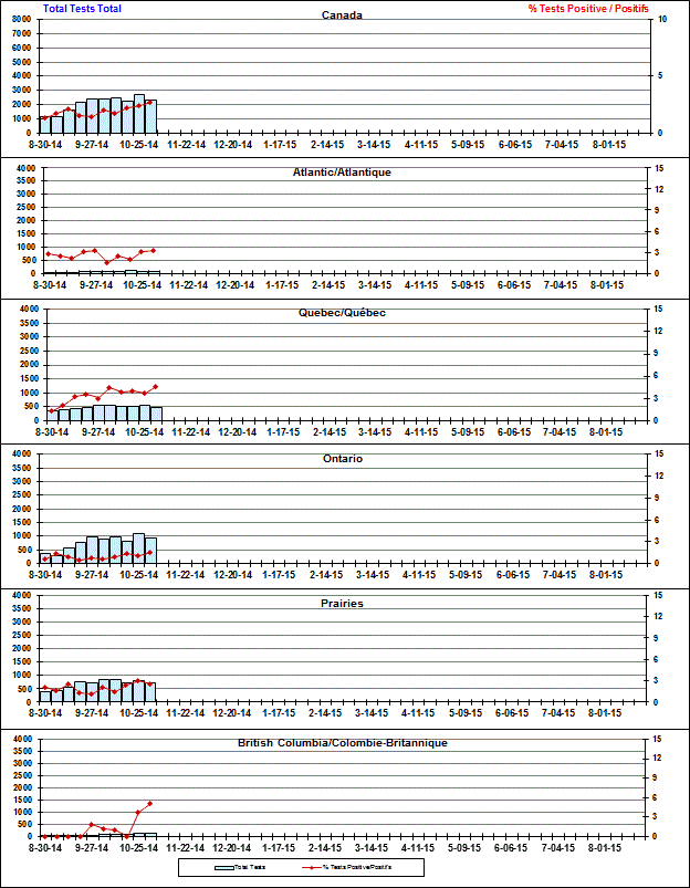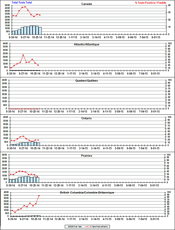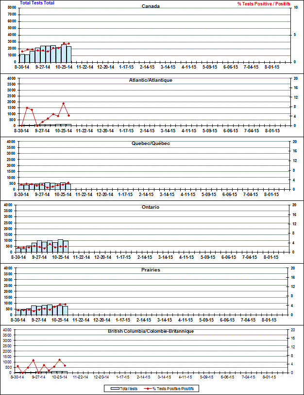 Respiratory Virus Detections/Isolations in Canada, Week 44 ending November 1, 2014