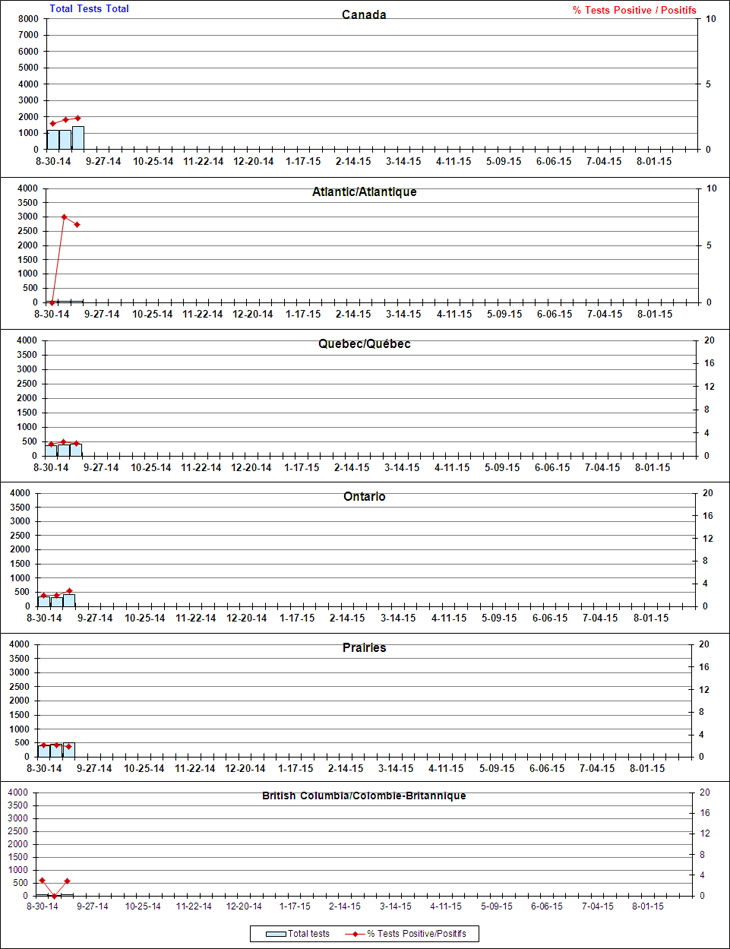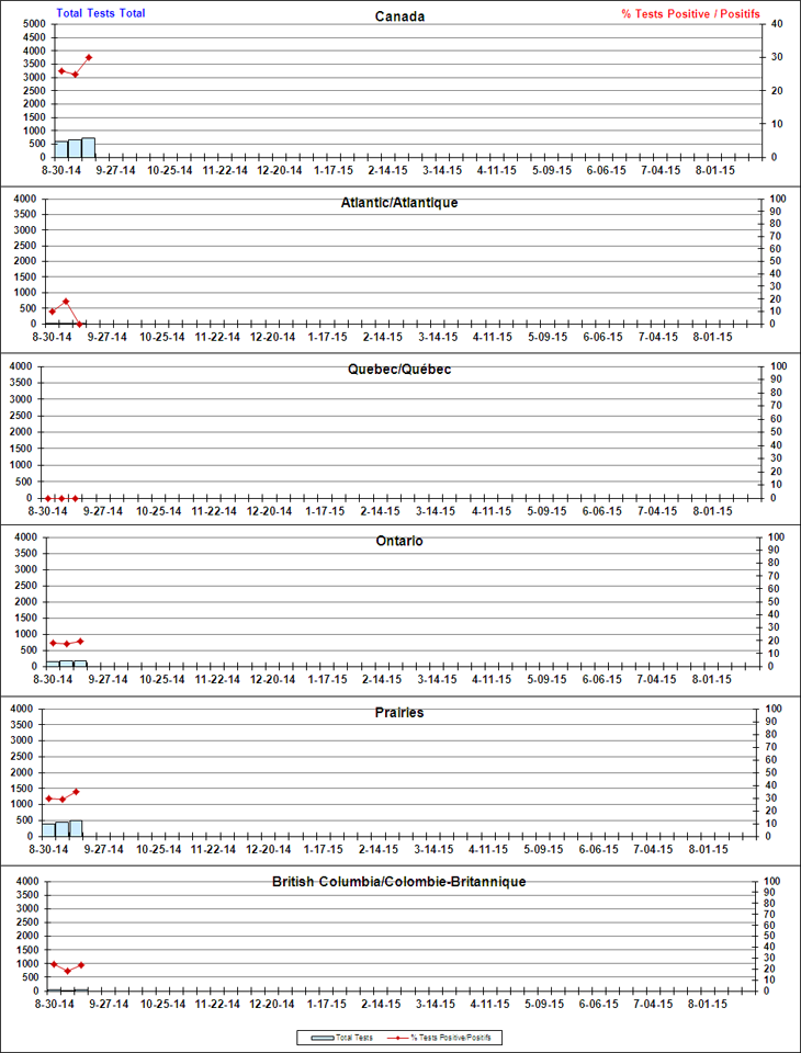 Respiratory Virus Detections/Isolations in Canada, Week 37 ending September 13, 2014