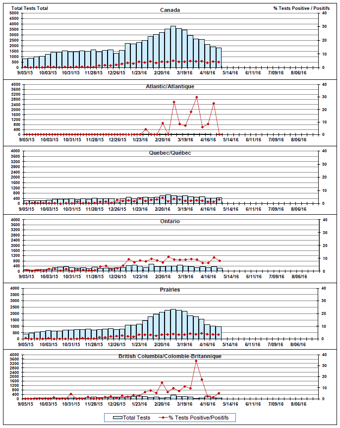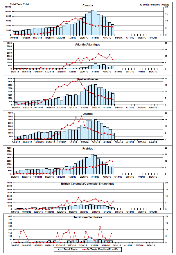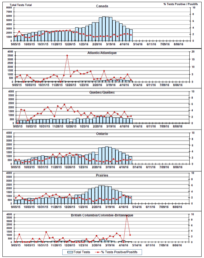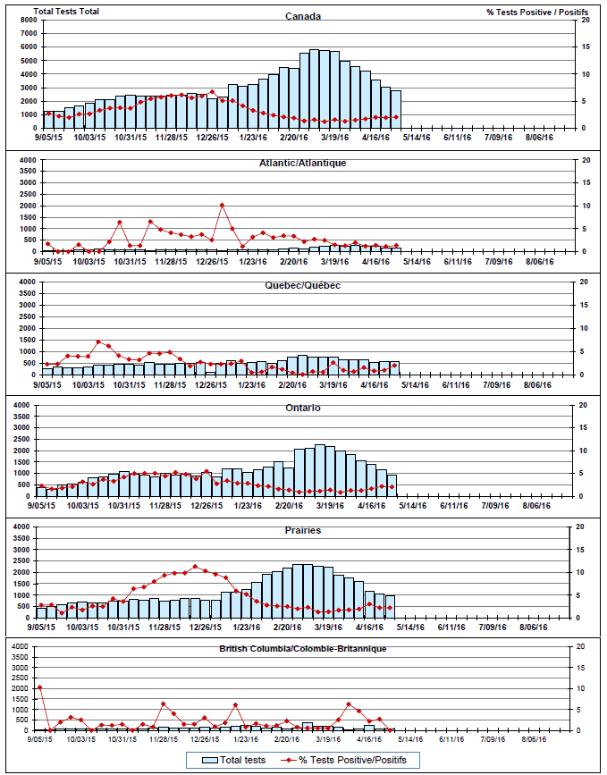 Respiratory Virus Detections/Isolations in Canada, Week 17, ending April 30, 2016