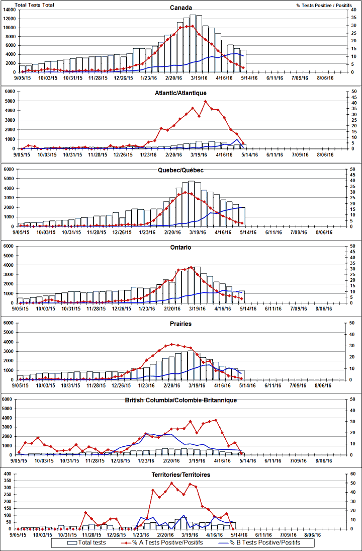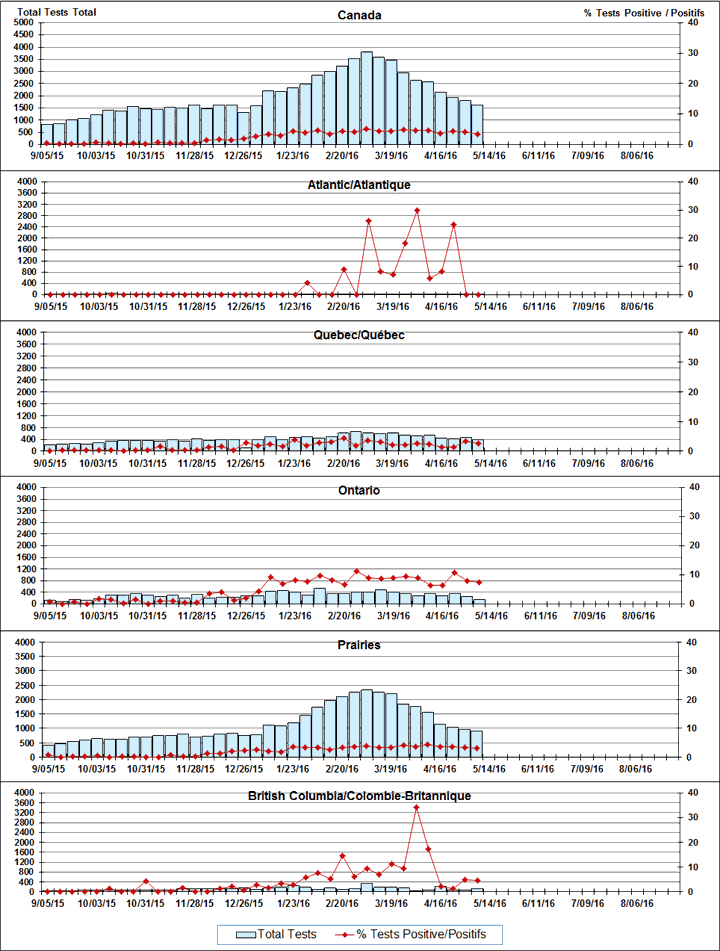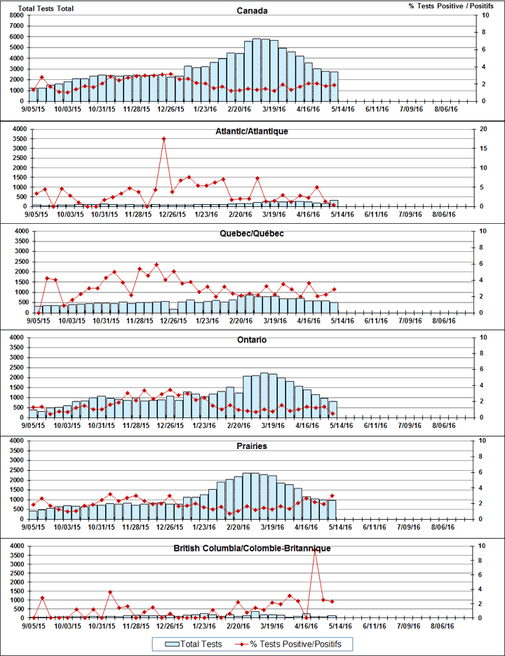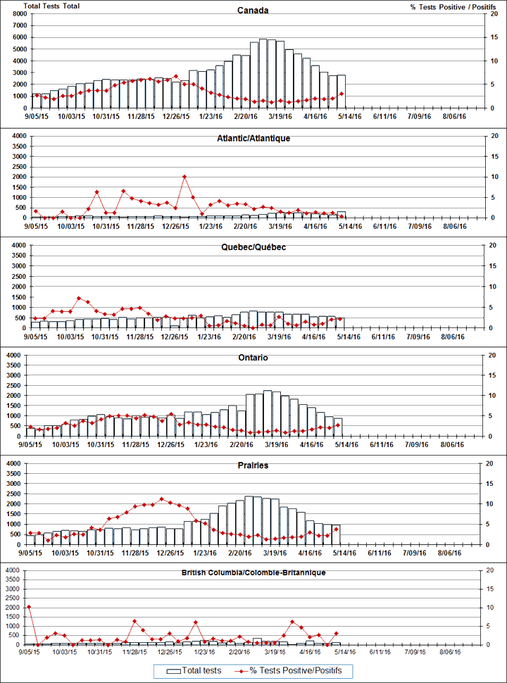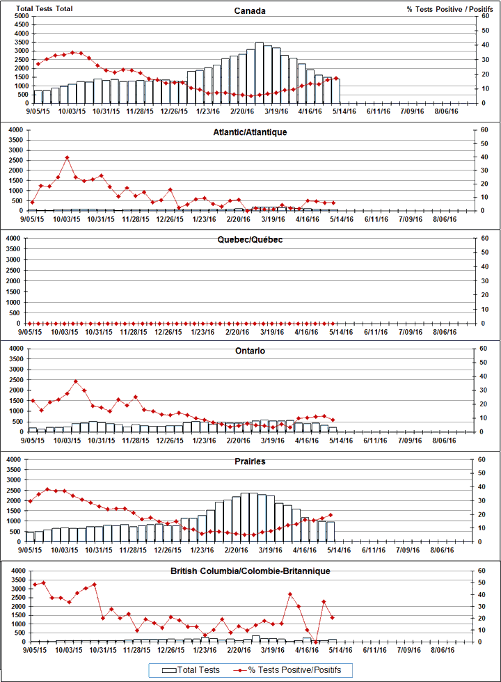 Respiratory Virus Detections/Isolations in Canada, Week 18, ending May 7, 2016