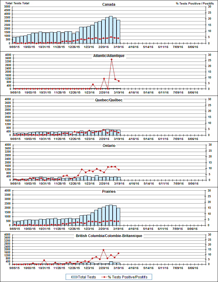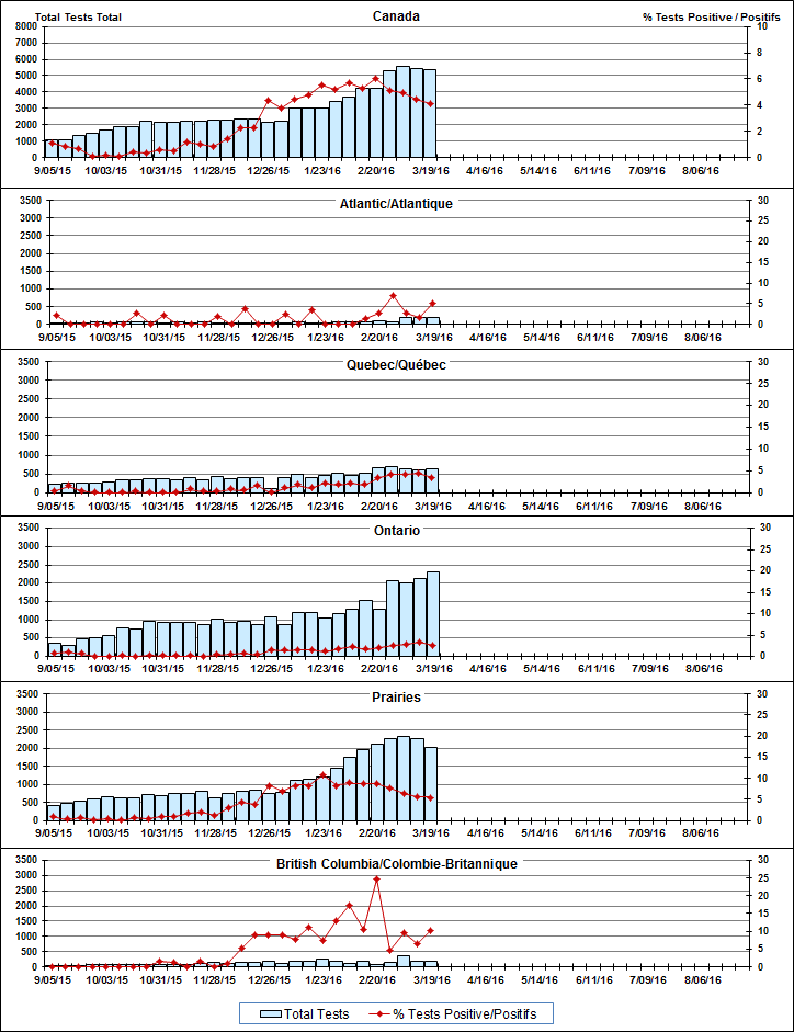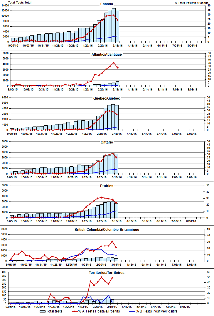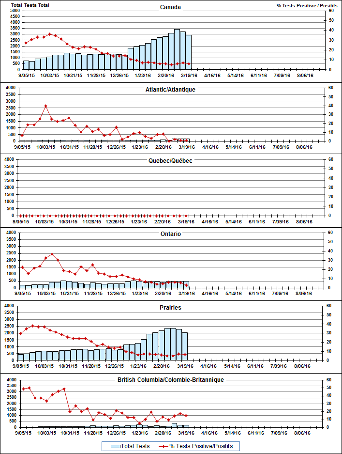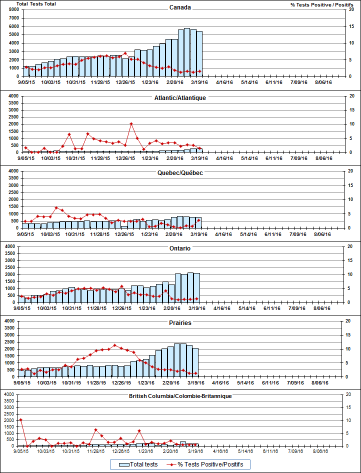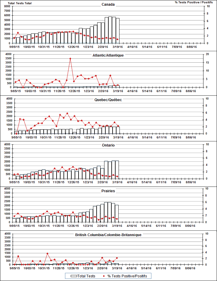 Respiratory Virus Detections/Isolations in Canada, Week 11, ending March 19, 2016