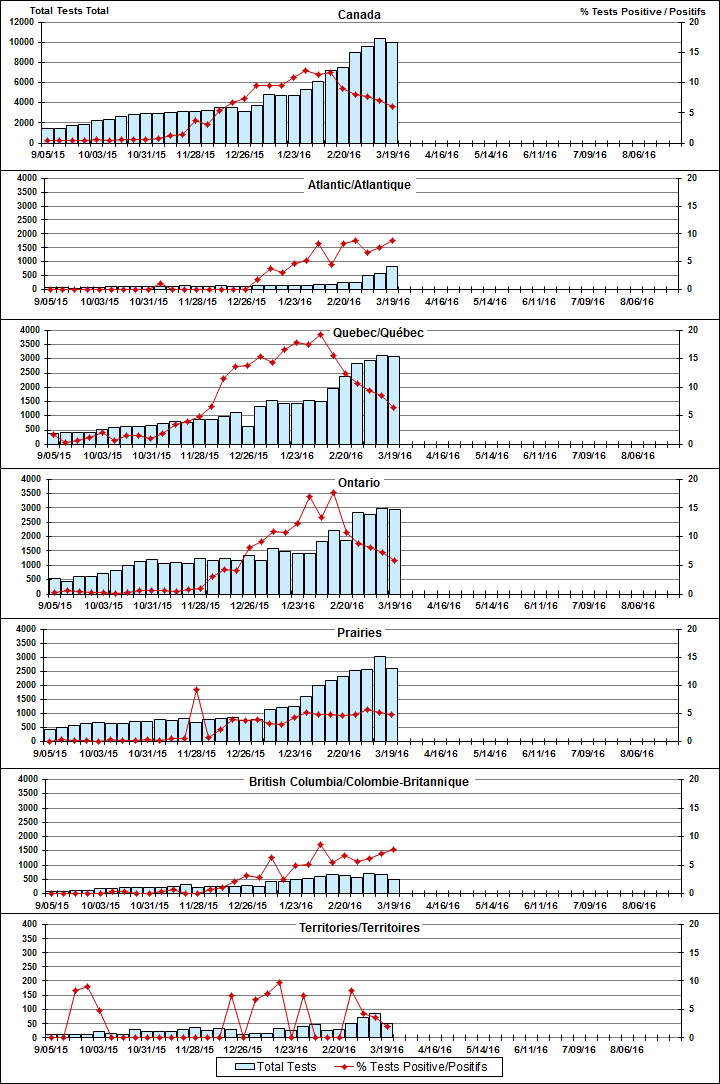 Specimens from YT, NT and NU are sent to reference laboratories in other provinces and reported results reflect specimens identified as originating from YT, NT or NU.