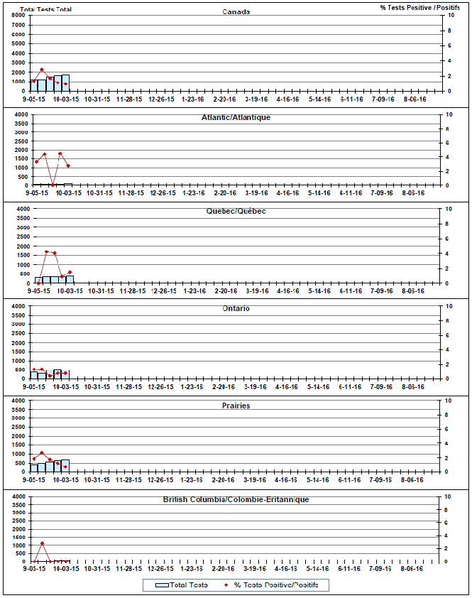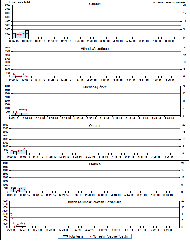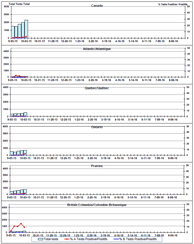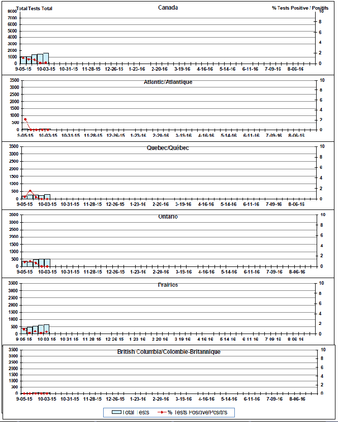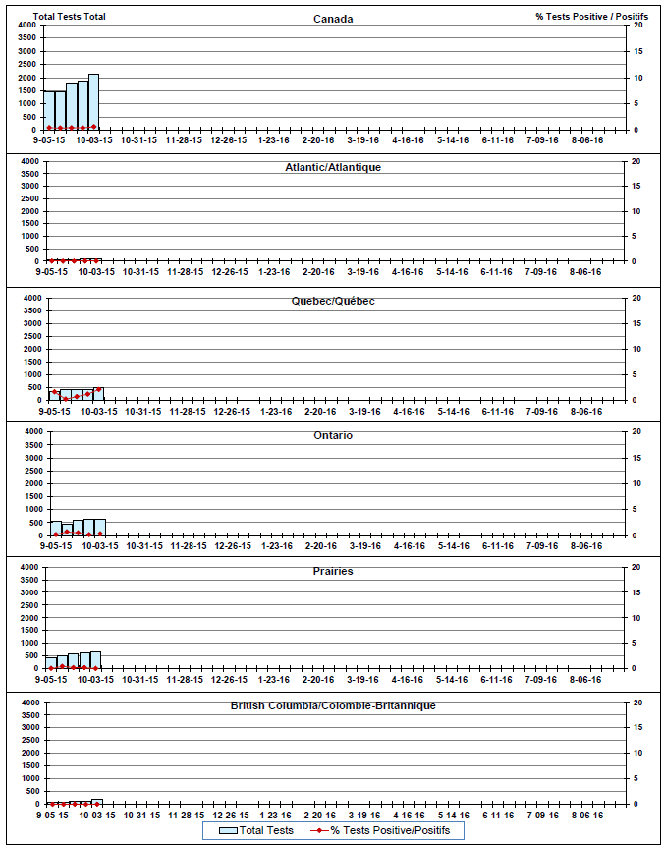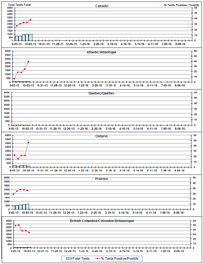 Respiratory Virus Detections/Isolations in Canada, Week 39 ending October 3, 2015