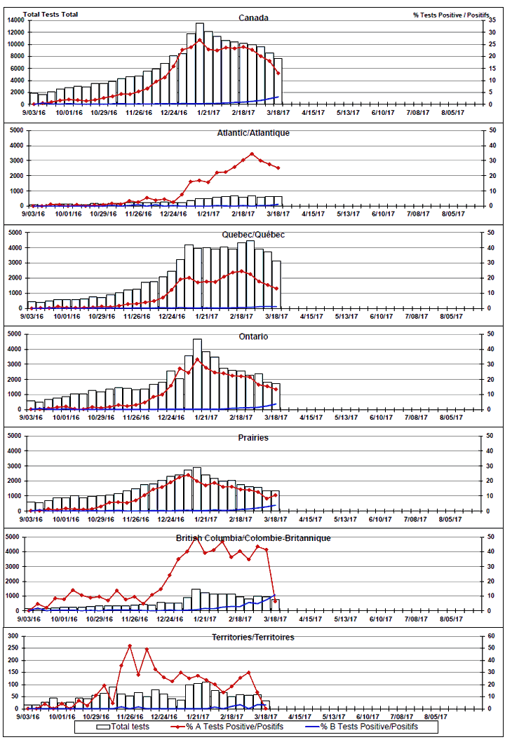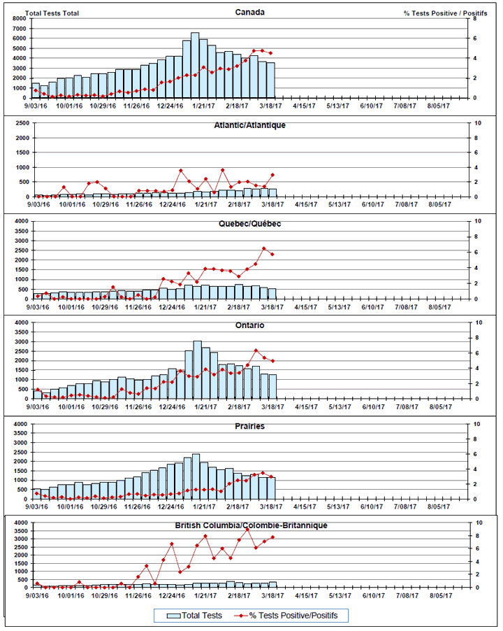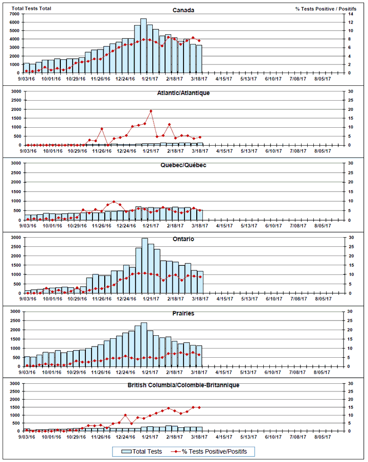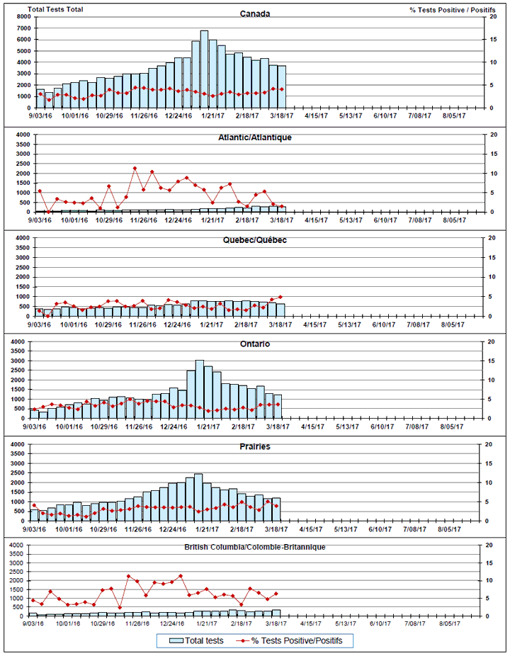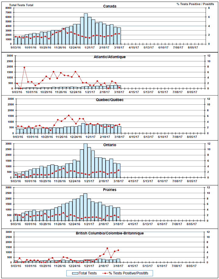 Respiratory Virus Detections/Isolations in Canada, Week 11 ending March 18, 2017