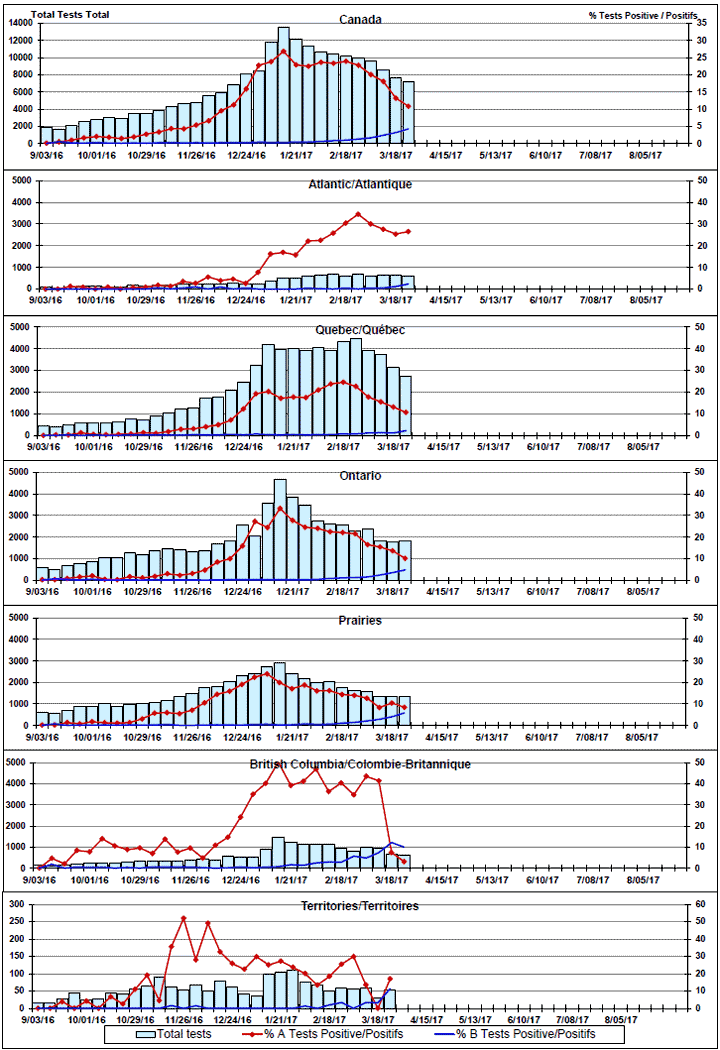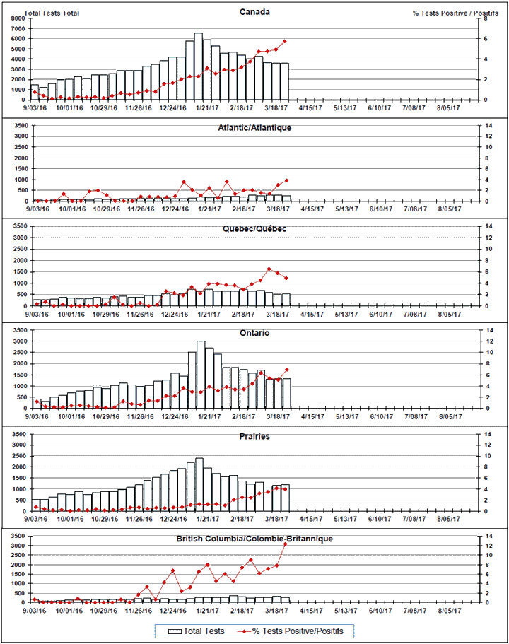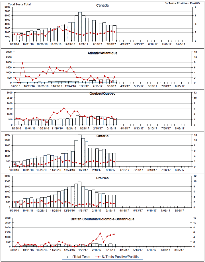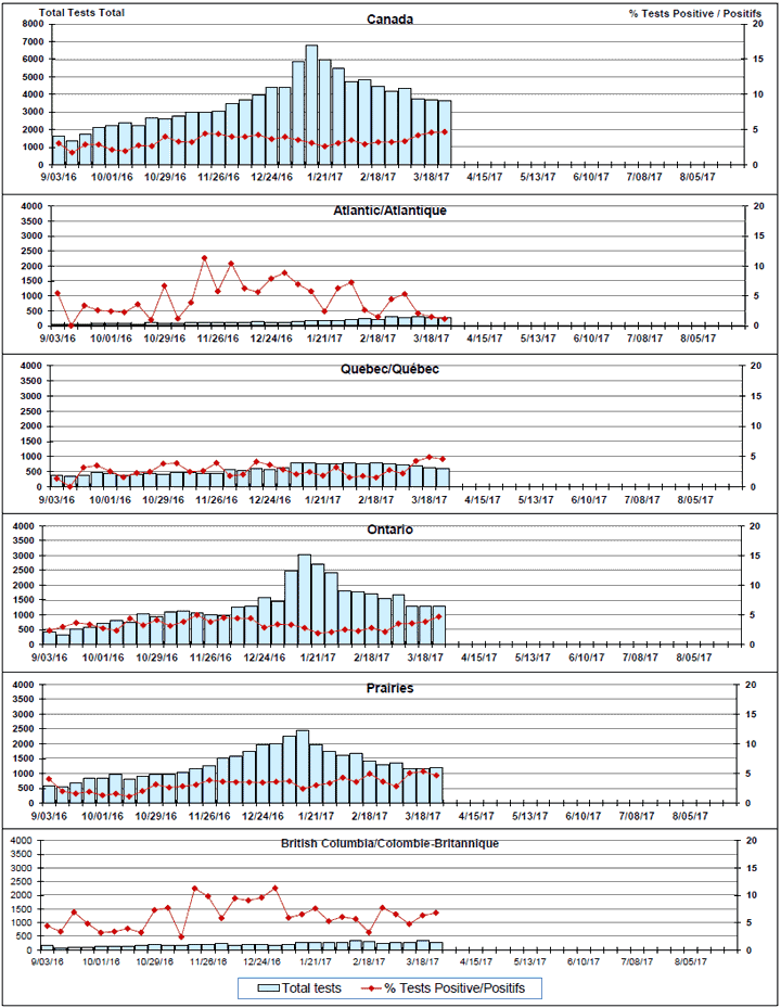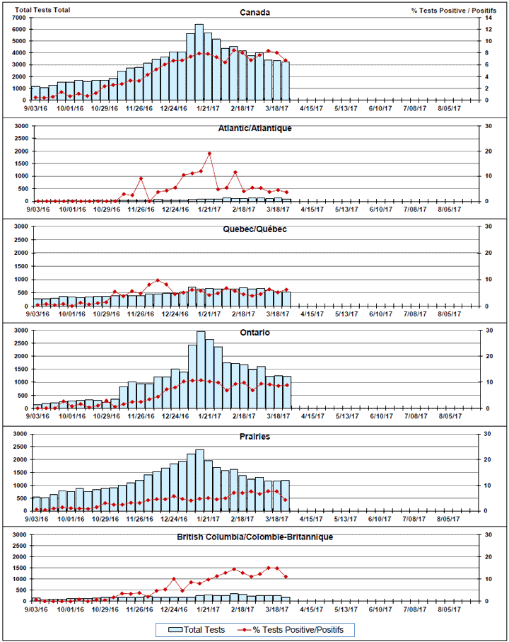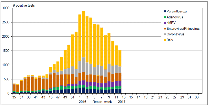 Respiratory Virus Detections/Isolations in Canada, Week 12 ending March 25, 2017