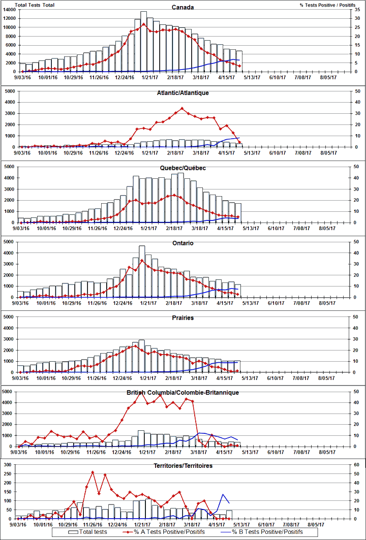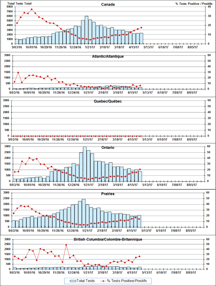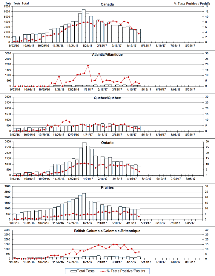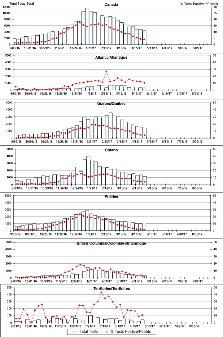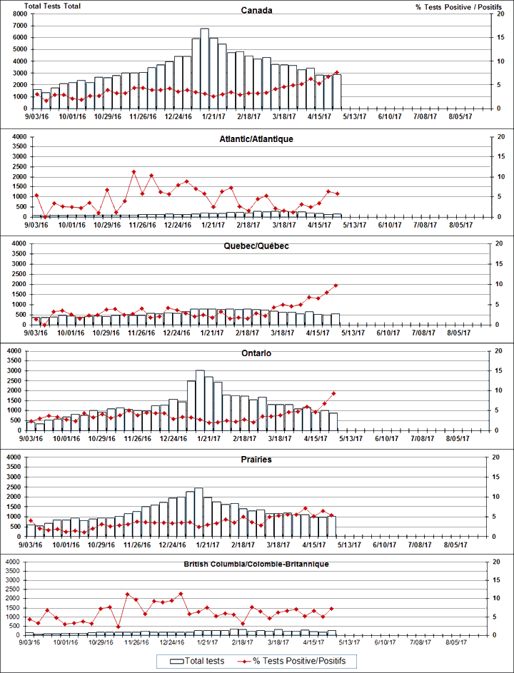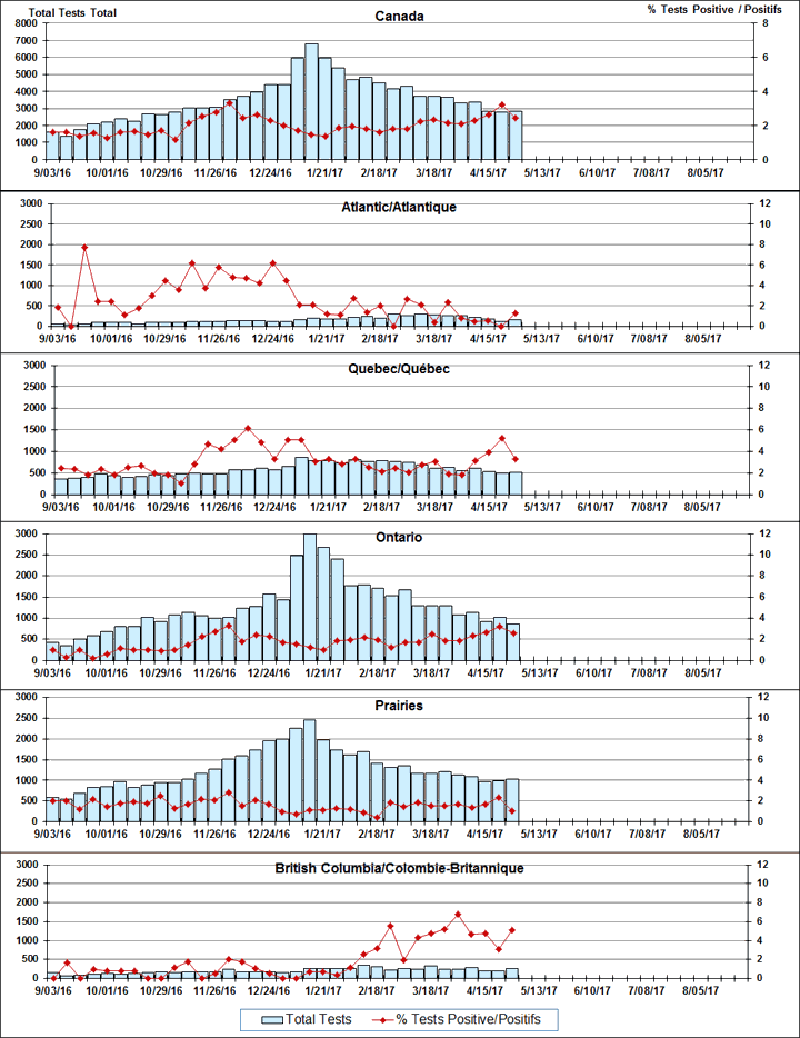 Respiratory Virus Detections/Isolations in Canada, Week 17 ending April 29, 2017