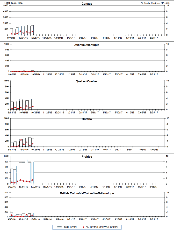Respiratory Virus Detections/Isolations in Canada, Week 42 ending October 22, 2016