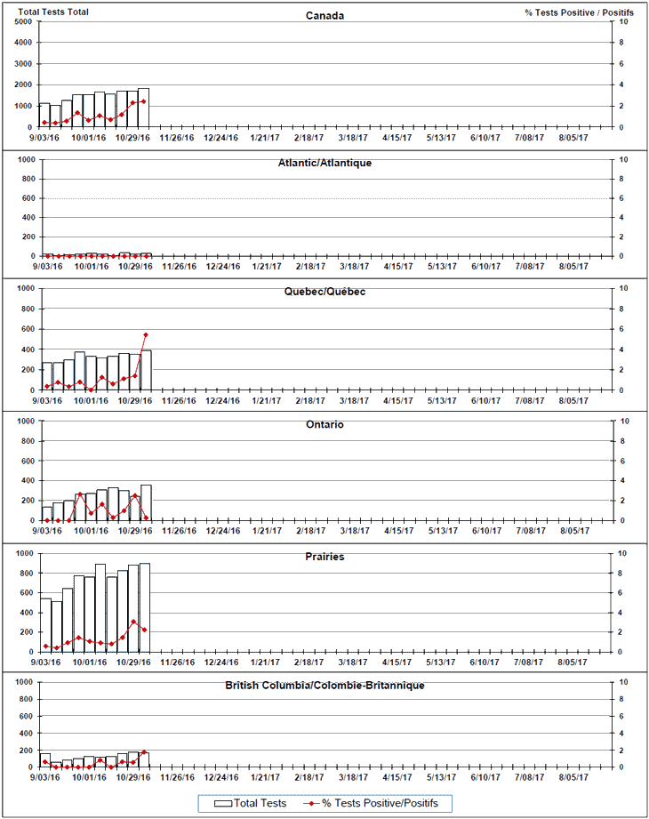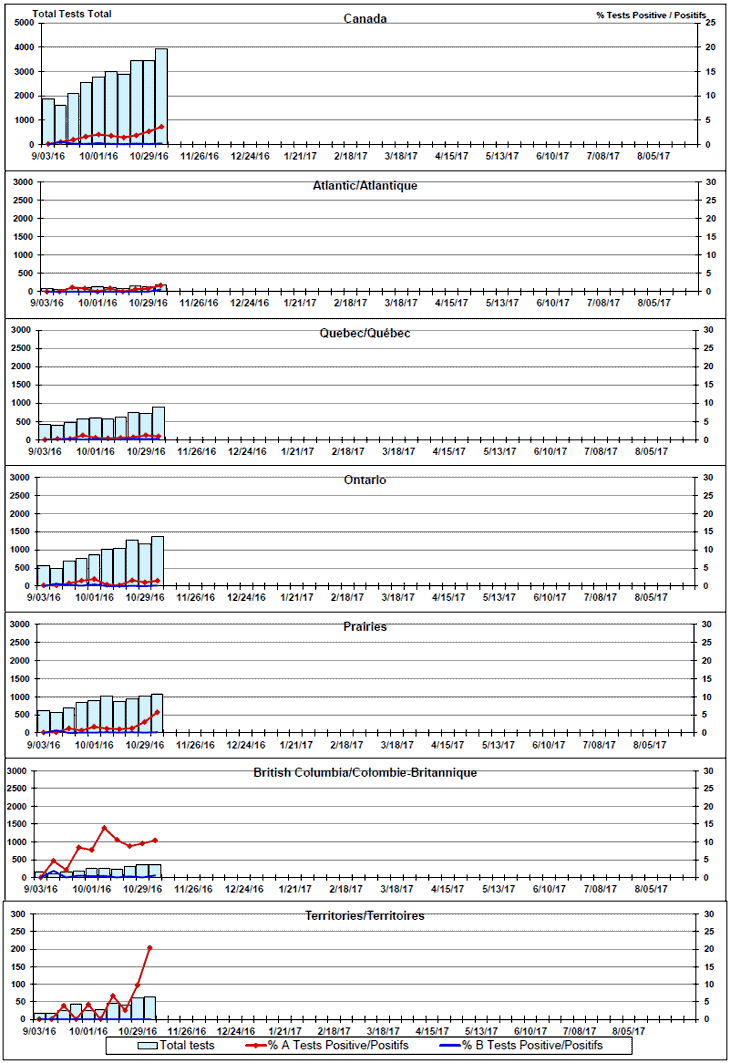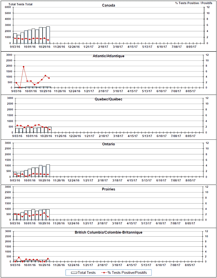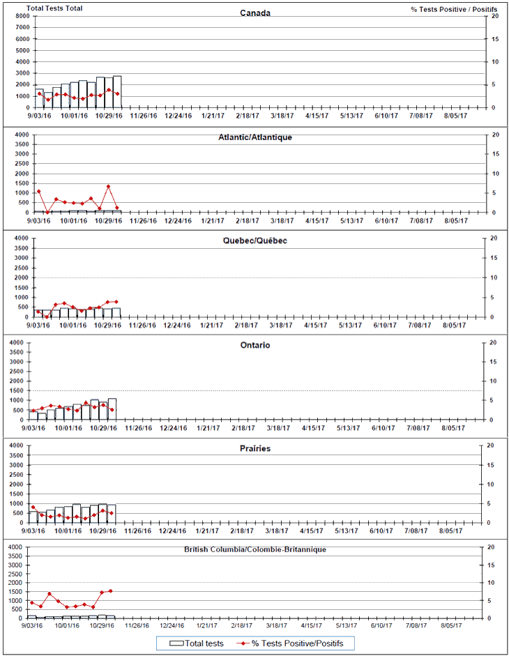 Respiratory Virus Detections/Isolations in Canada, Week 44 ending November 5, 2016