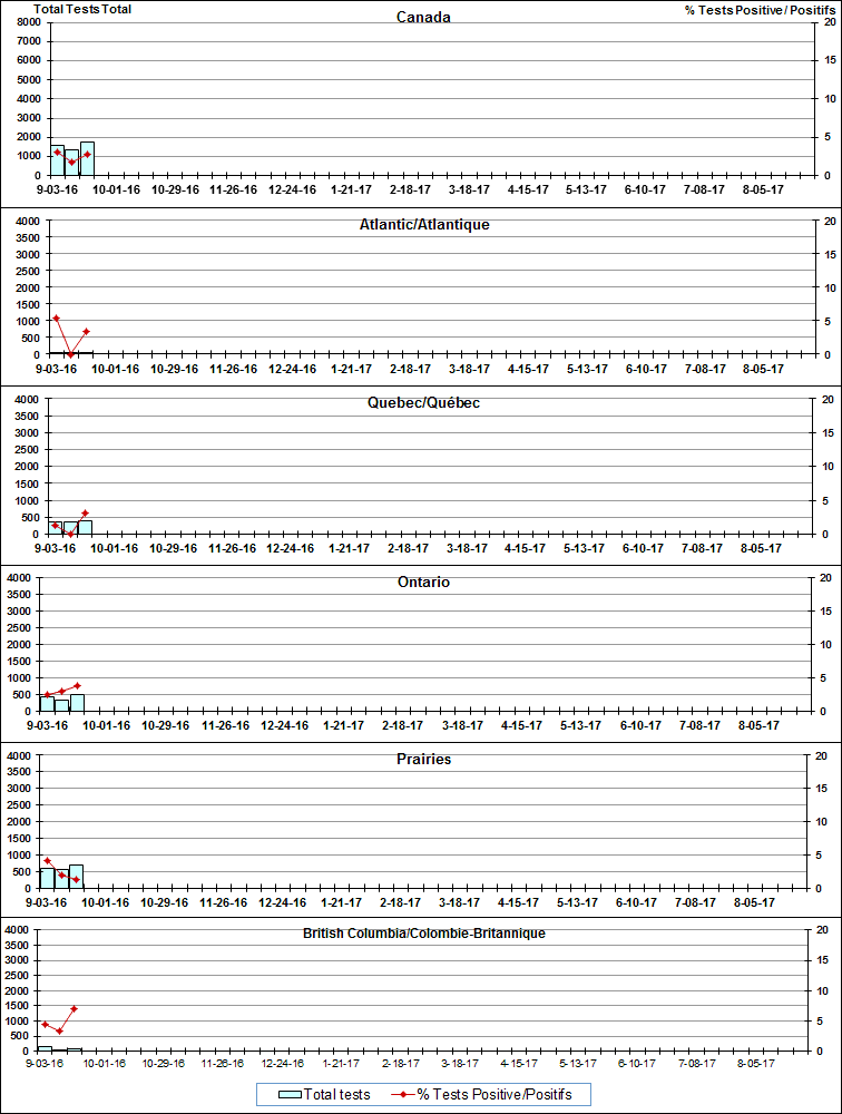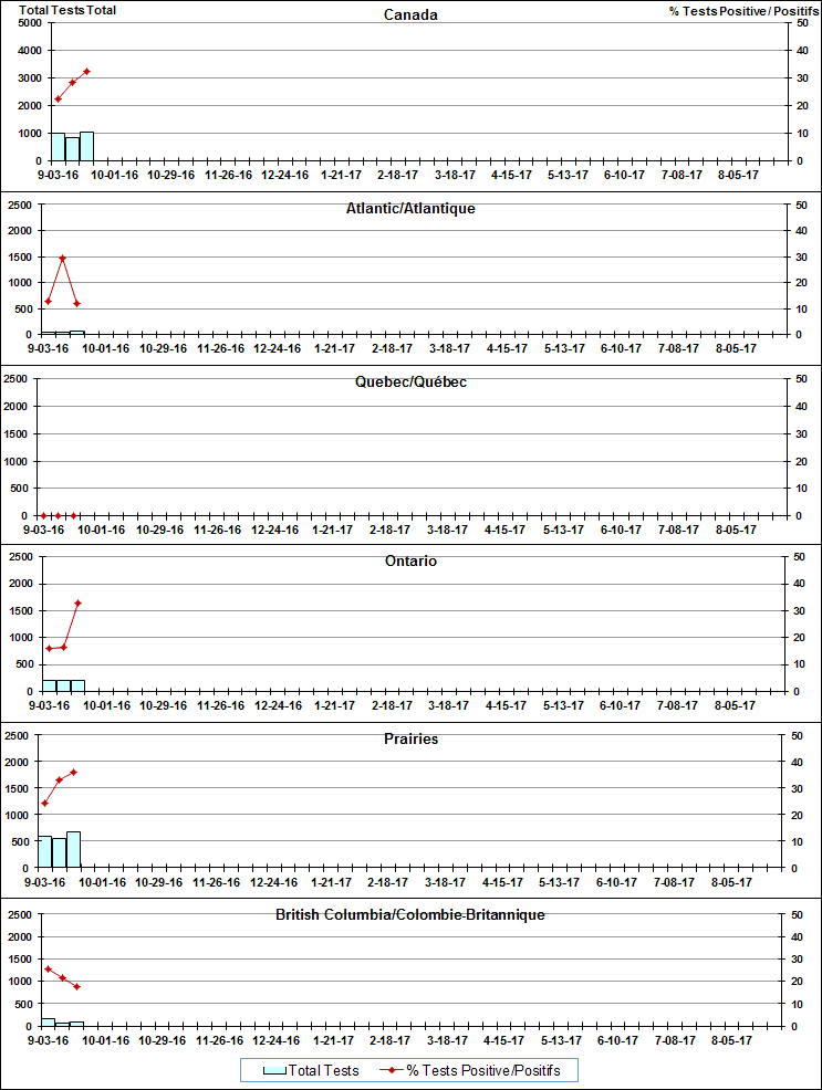 Respiratory Virus Detections/Isolations in Canada, Week 37 ending September 17, 2016