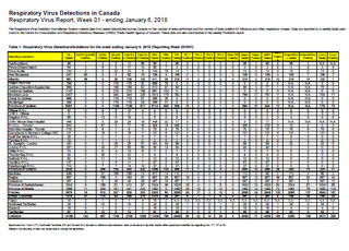 Respiratory Virus Report, Week 1 ending January 6, 2018