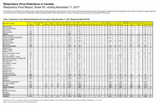 Table 1: Respiratory Virus Detections/Isolations for the week ending November 11, 2017 (Reporting Week 201745)