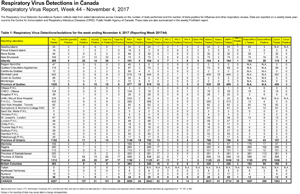 Respiratory Virus Report, Week 44 ending November 4, 2017